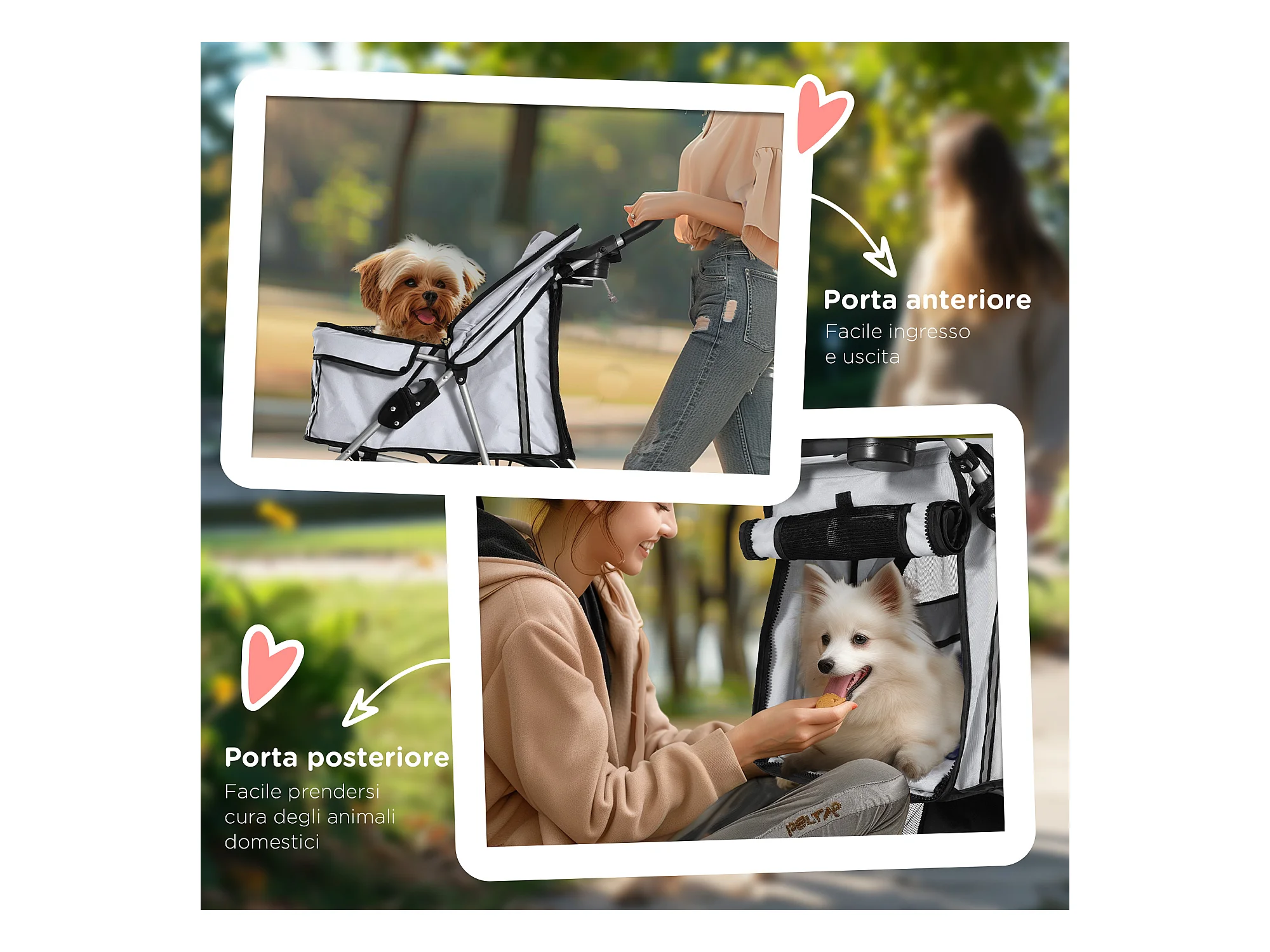 Passeggino per cani pieghevole con ingressi a cerniera grigio scuro