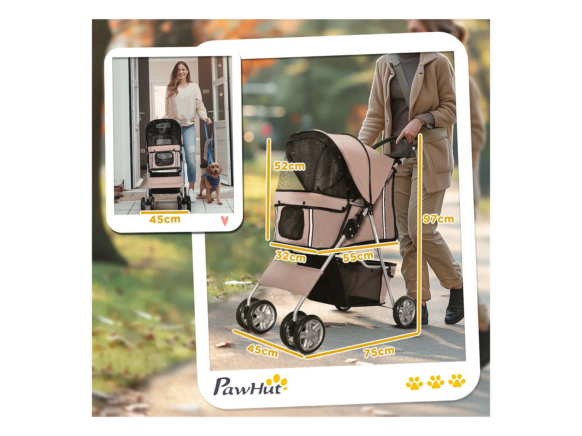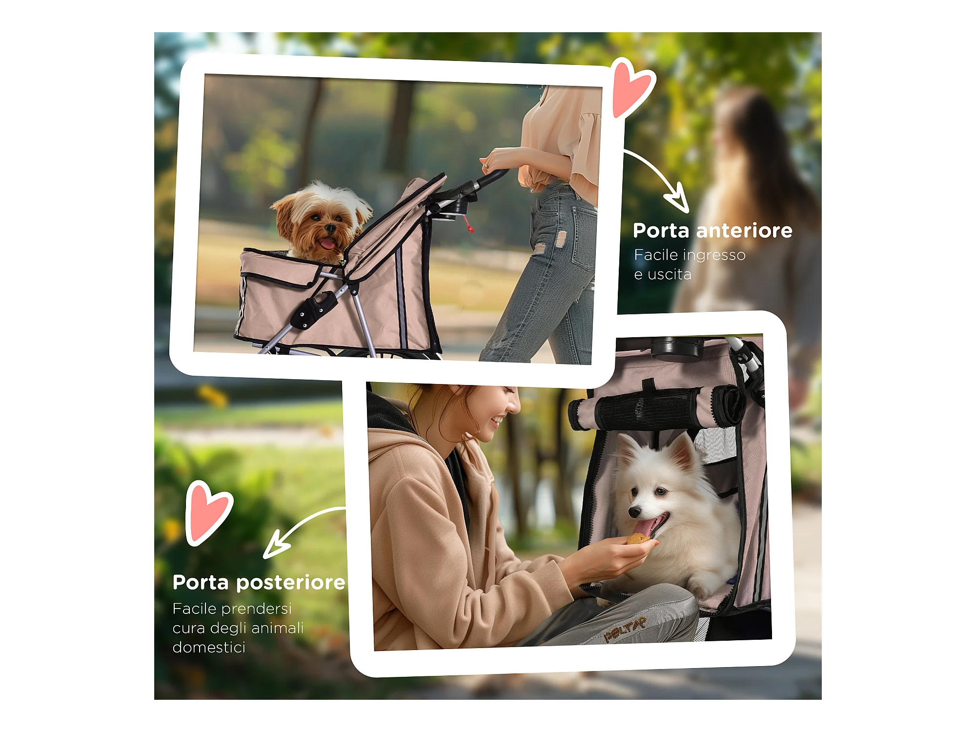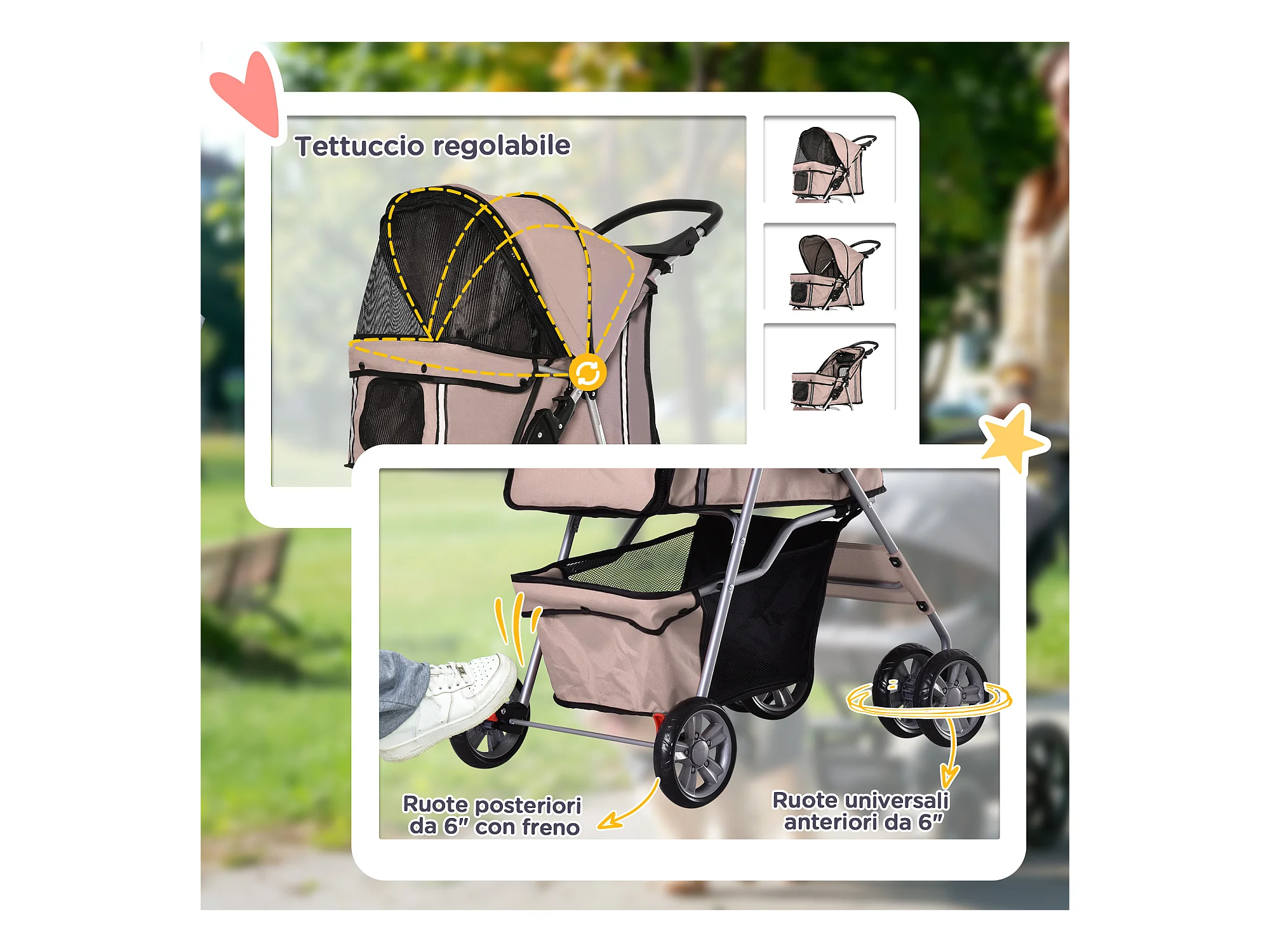Passeggino per cani pieghevole cestino copertura tessuto oxford marrone