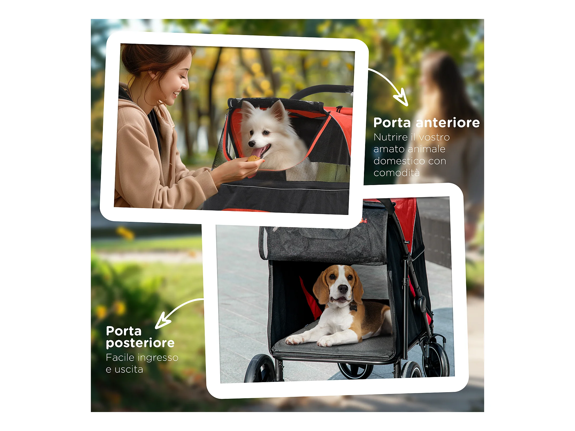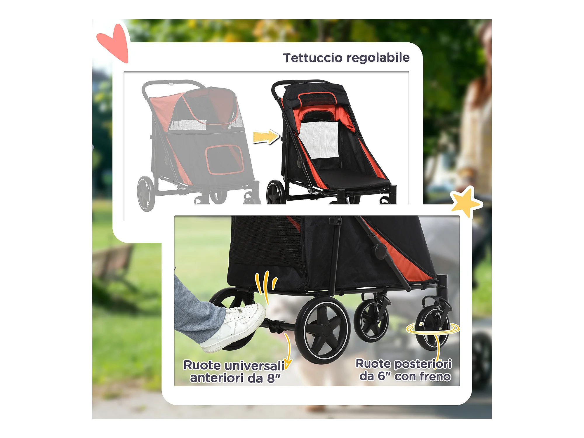 Passeggino per cani pieghevole con tettuccio regolabile rosso e nero