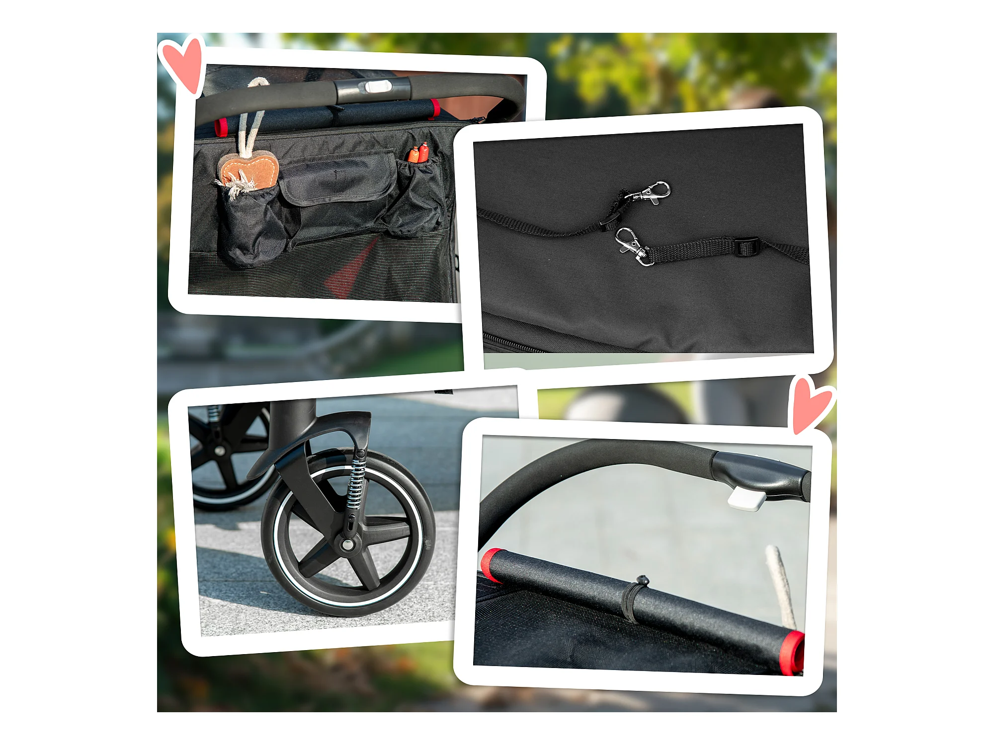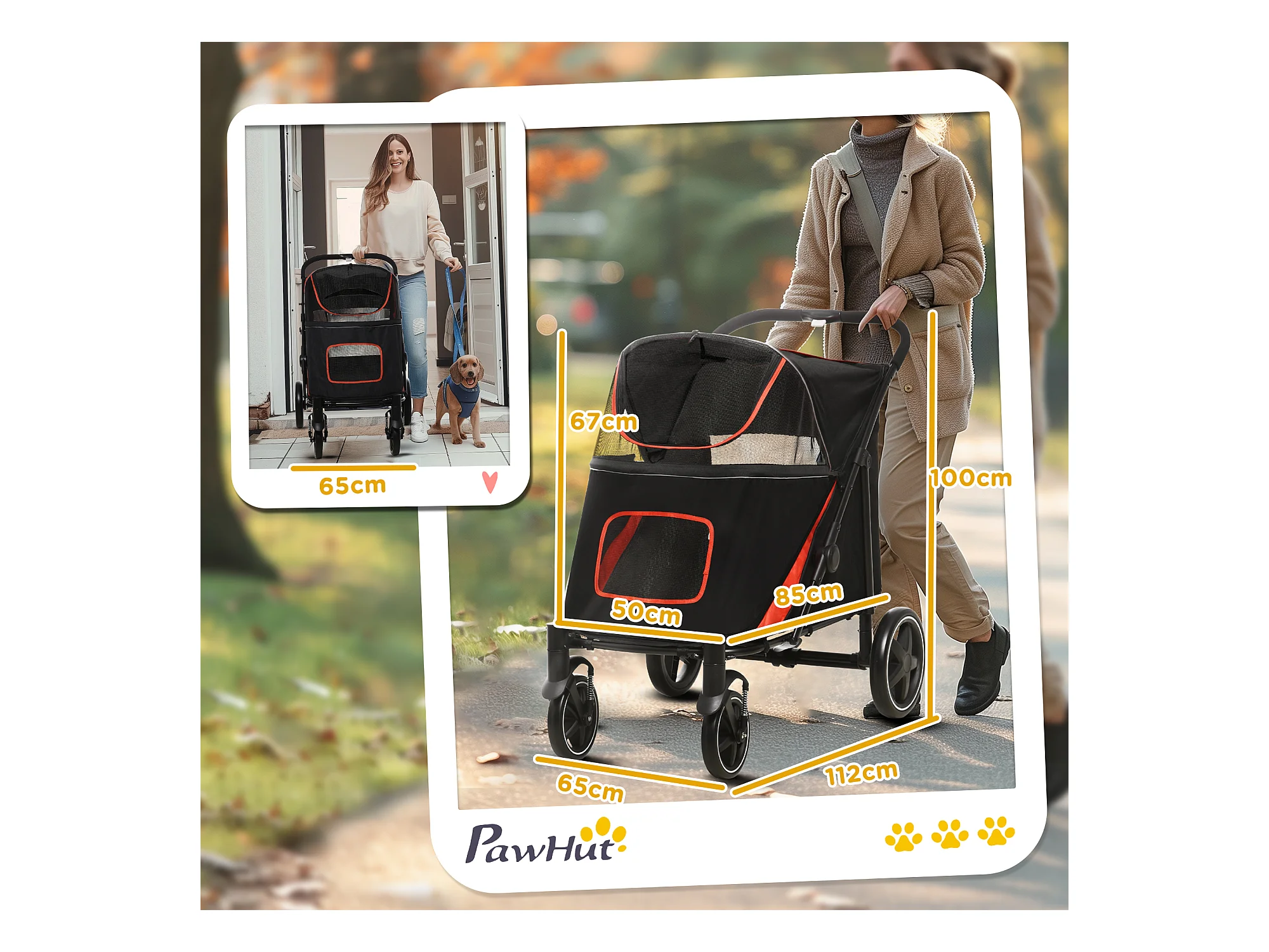 Passeggino per cani pieghevole con ingressi a cerniera rosso e nero