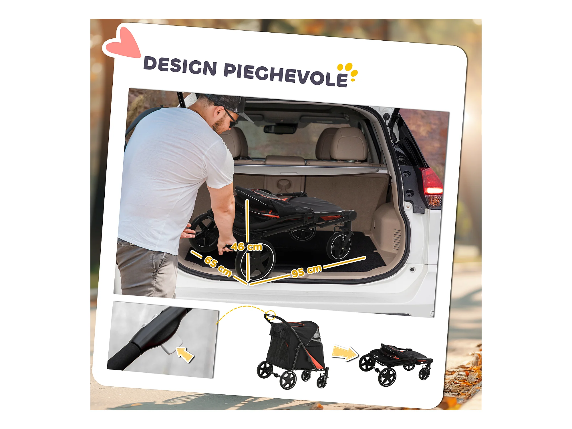Passeggino per cani pieghevole con maniglione girevole e ruote in eva