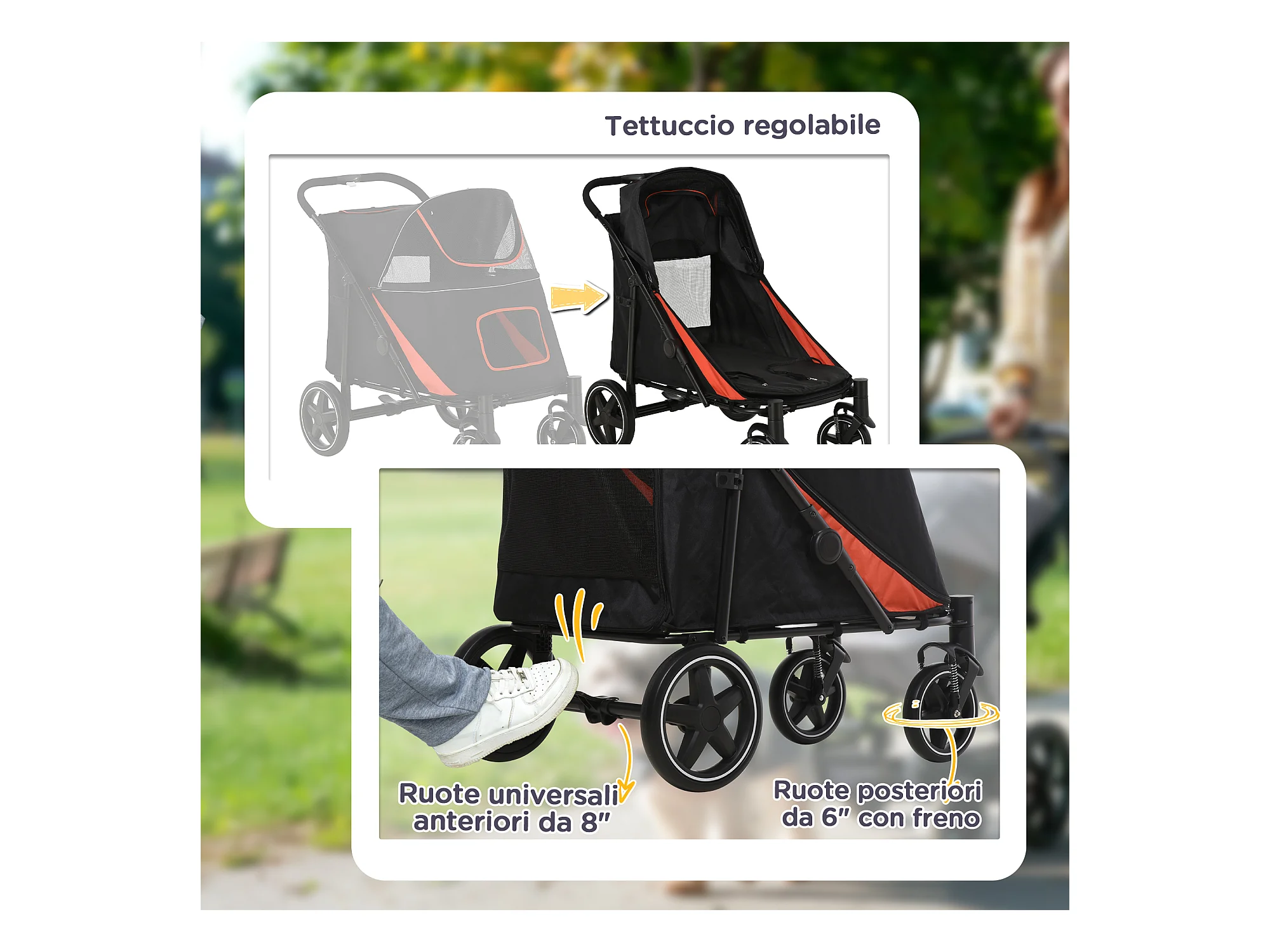 Passeggino per cani pieghevole con trasportino rimovibile e tettuccio