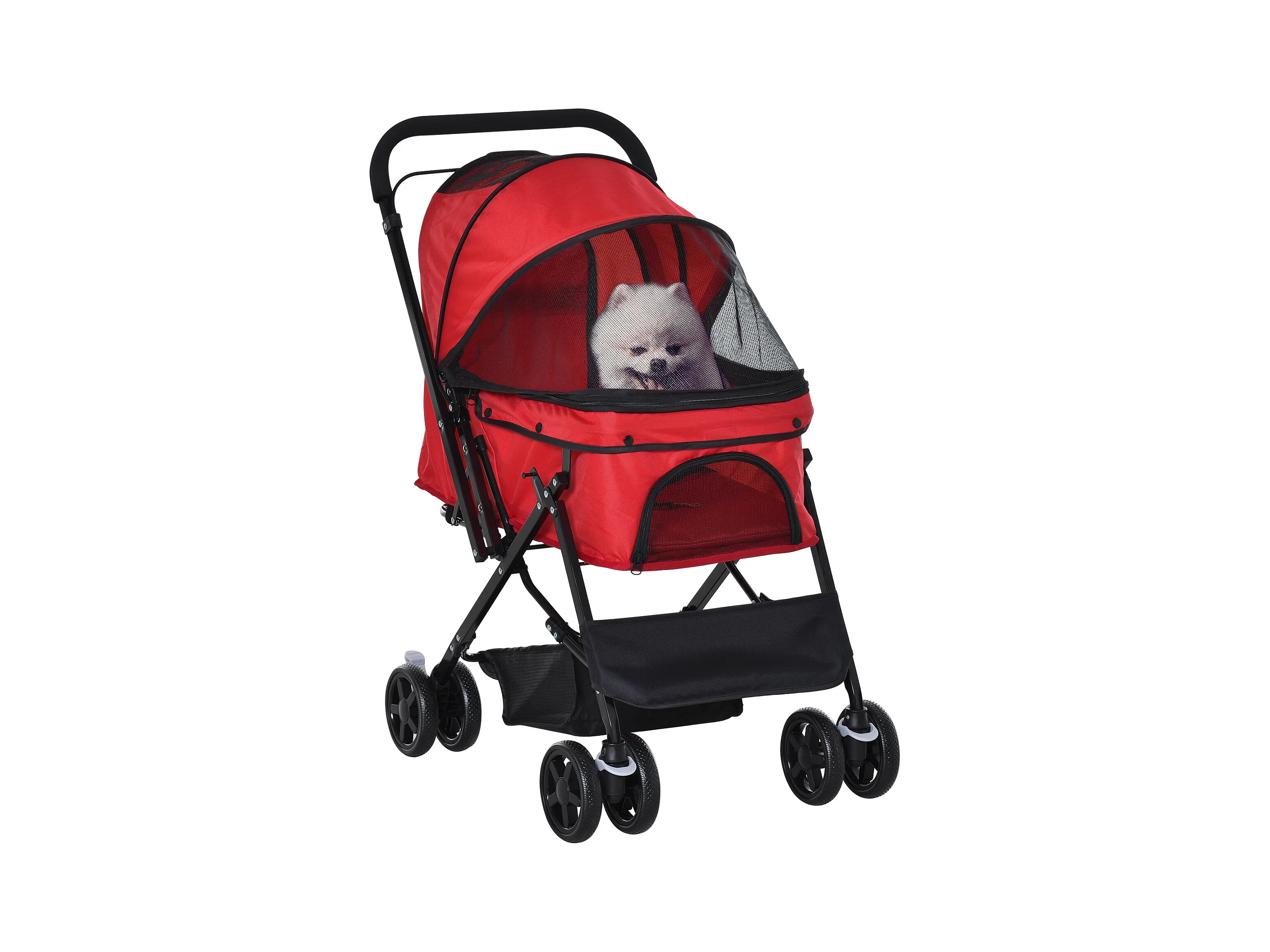 Passeggino per cani pieghevole con tettuccio regolabile rosso e nero