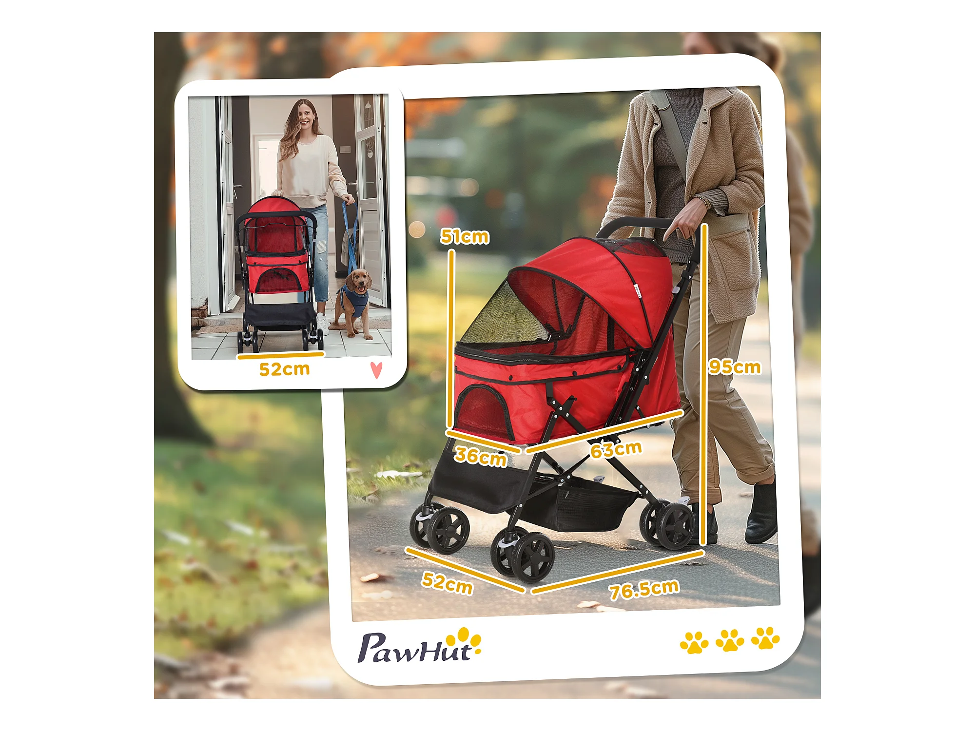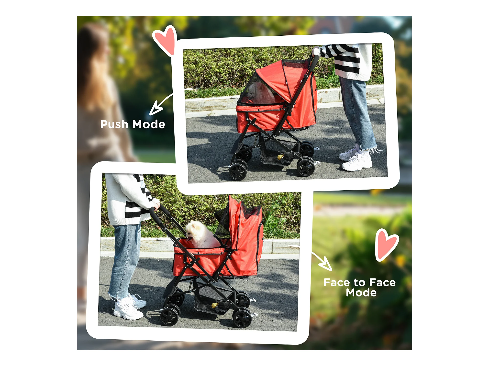 Passeggino per cani pieghevole con trasportino rimovibile rosso