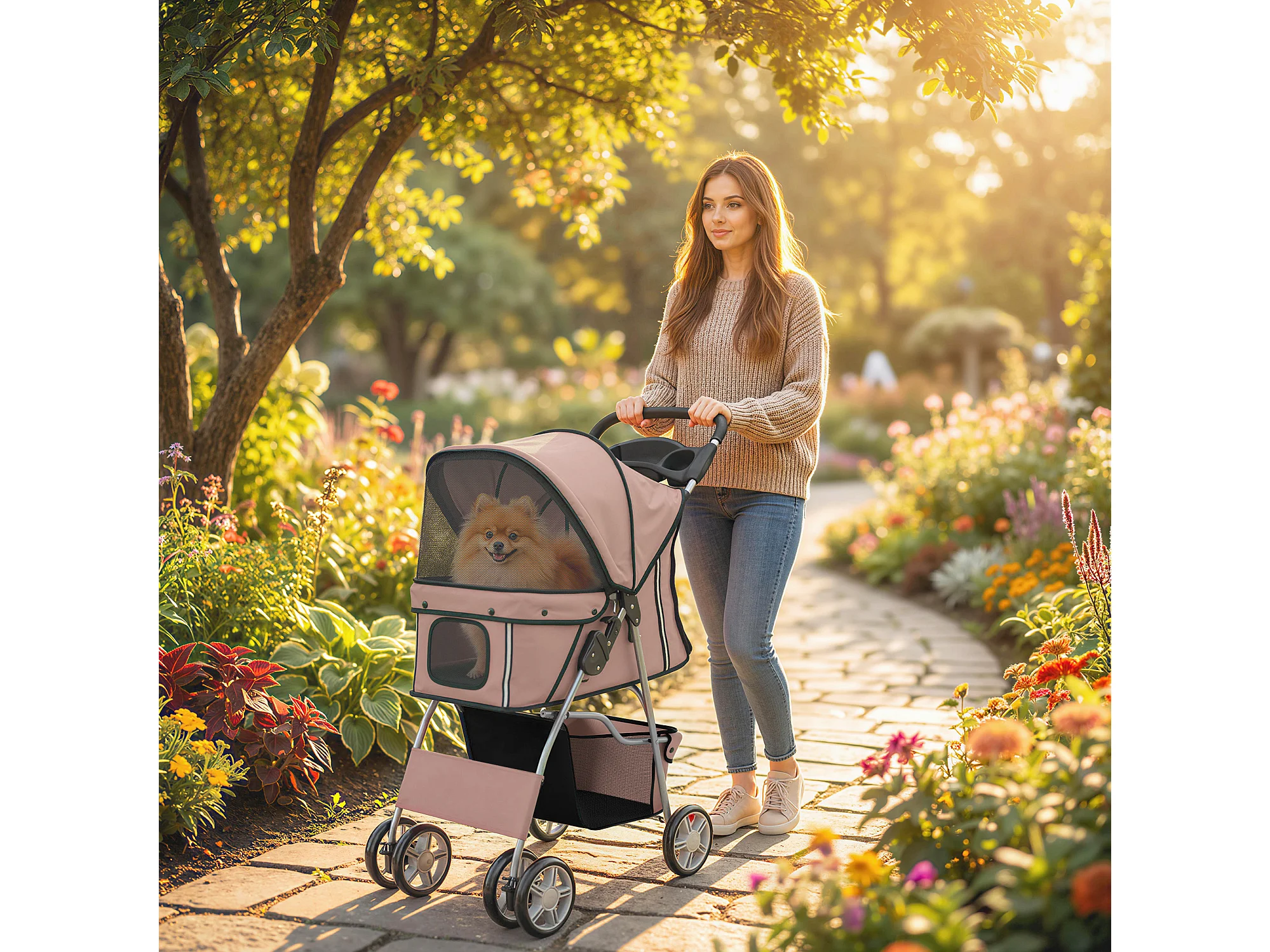 Passeggino per cani pieghevole con ruote girevoli caffè