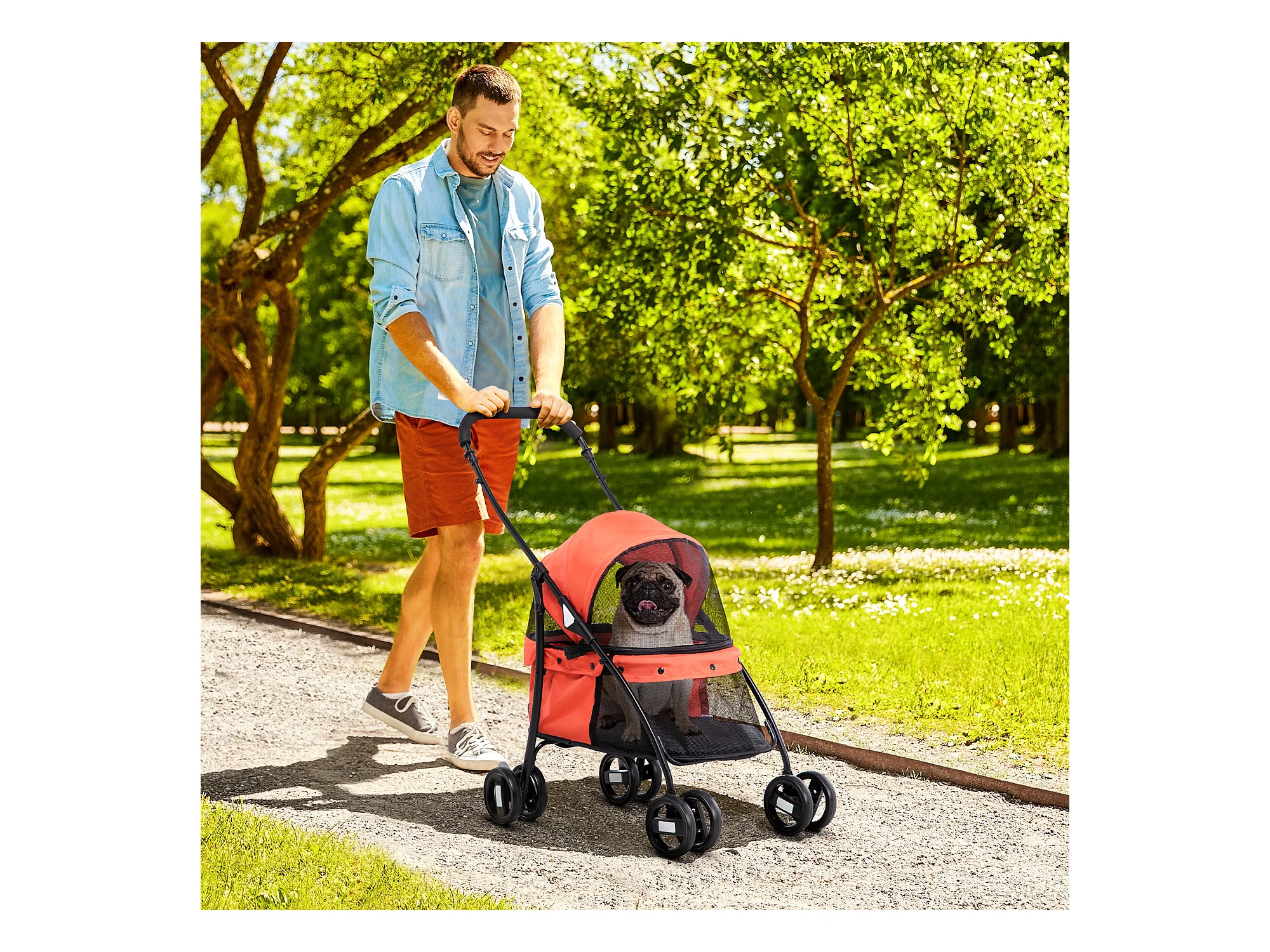 Passeggino per cani pieghevole con tettuccio regolabile rosso e nero