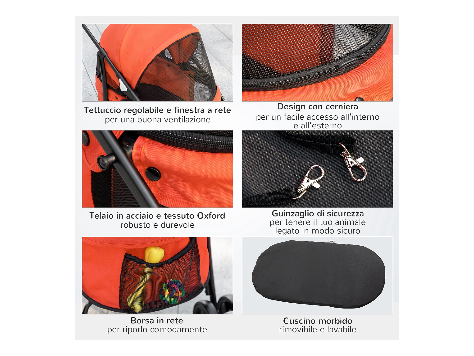 Passeggino per cani piccoli 15kg pieghevole rosso