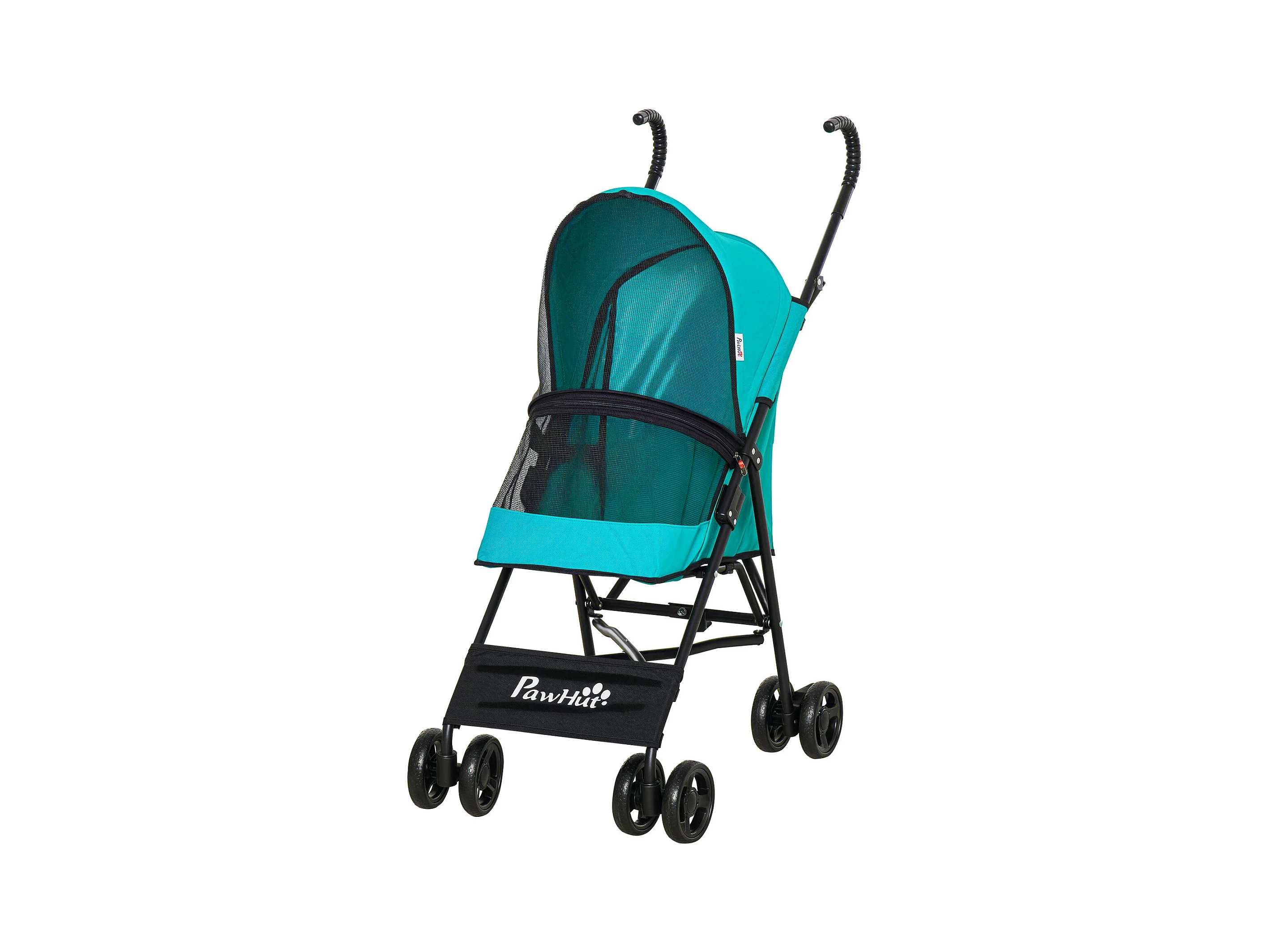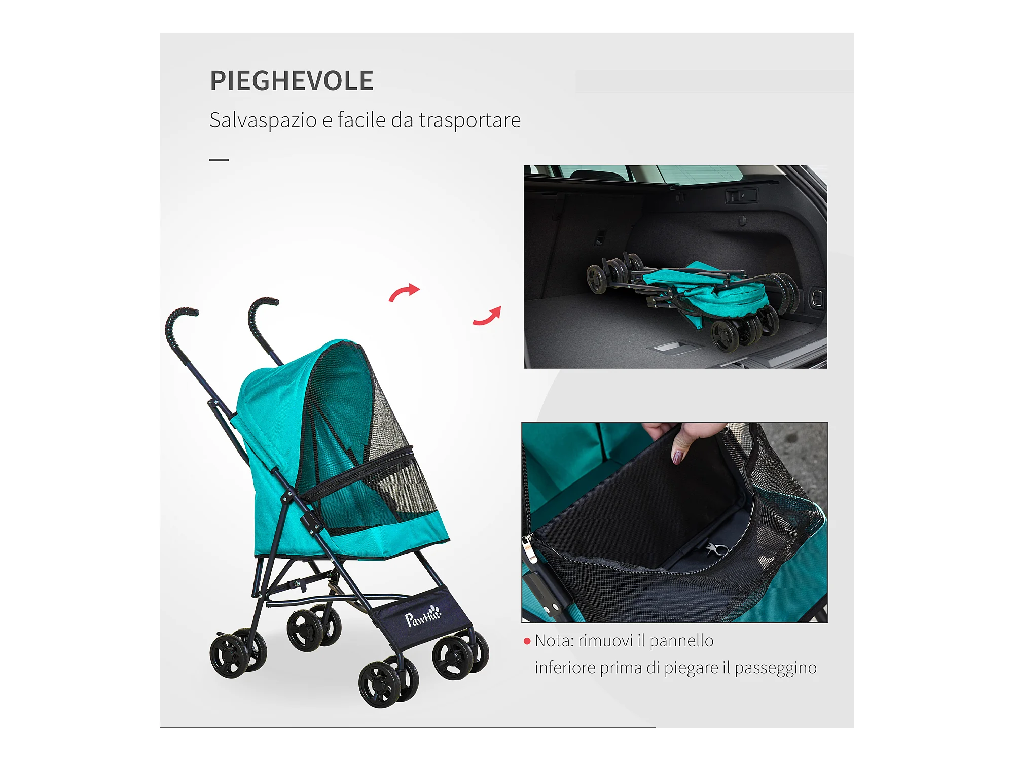 Passeggino cani pieghevole copertura antipioggia e guinzaglio verde