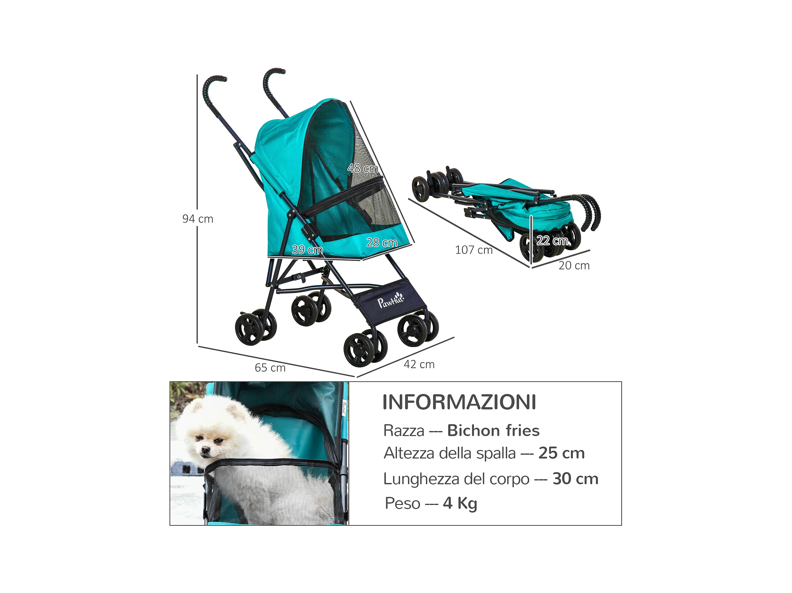 Passeggino per cani pieghevole ruote girevoli con freno in eva verde