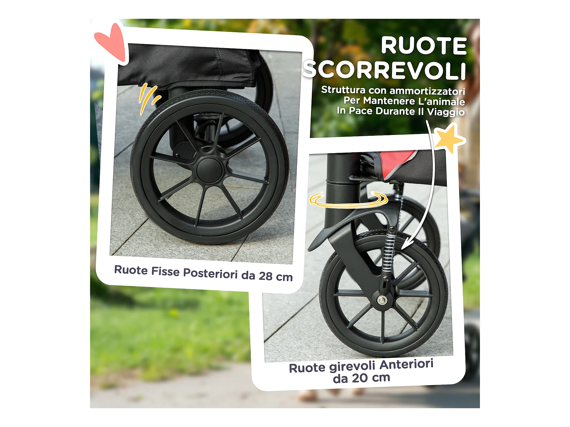 Passeggino per cani pieghevole con maniglione girevole e ruote in eva