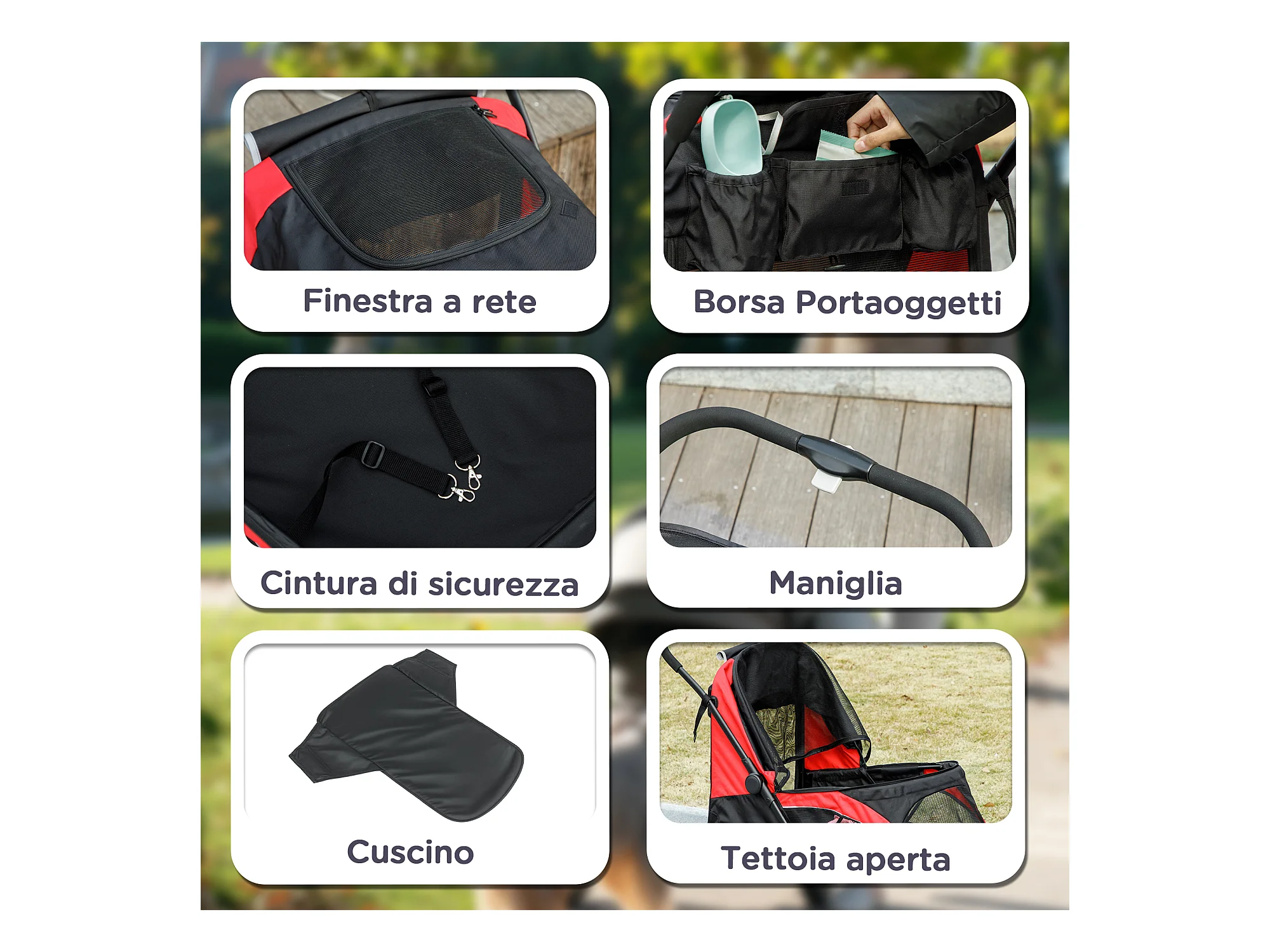 Passeggino per cani pieghevole con trasportino rimovibile e tettuccio