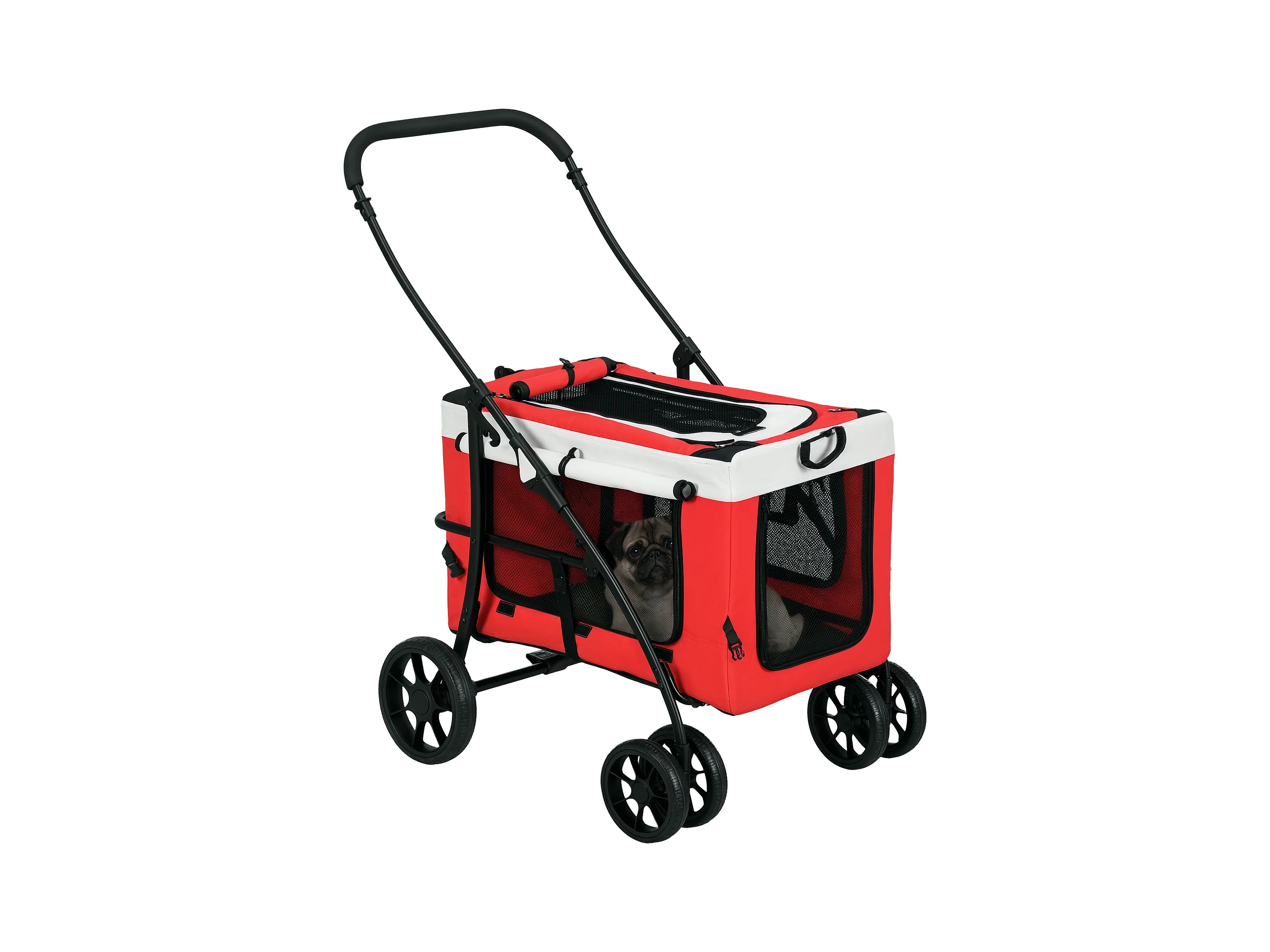 Passeggino per cani pieghevole con trasportino rimovibile rosso