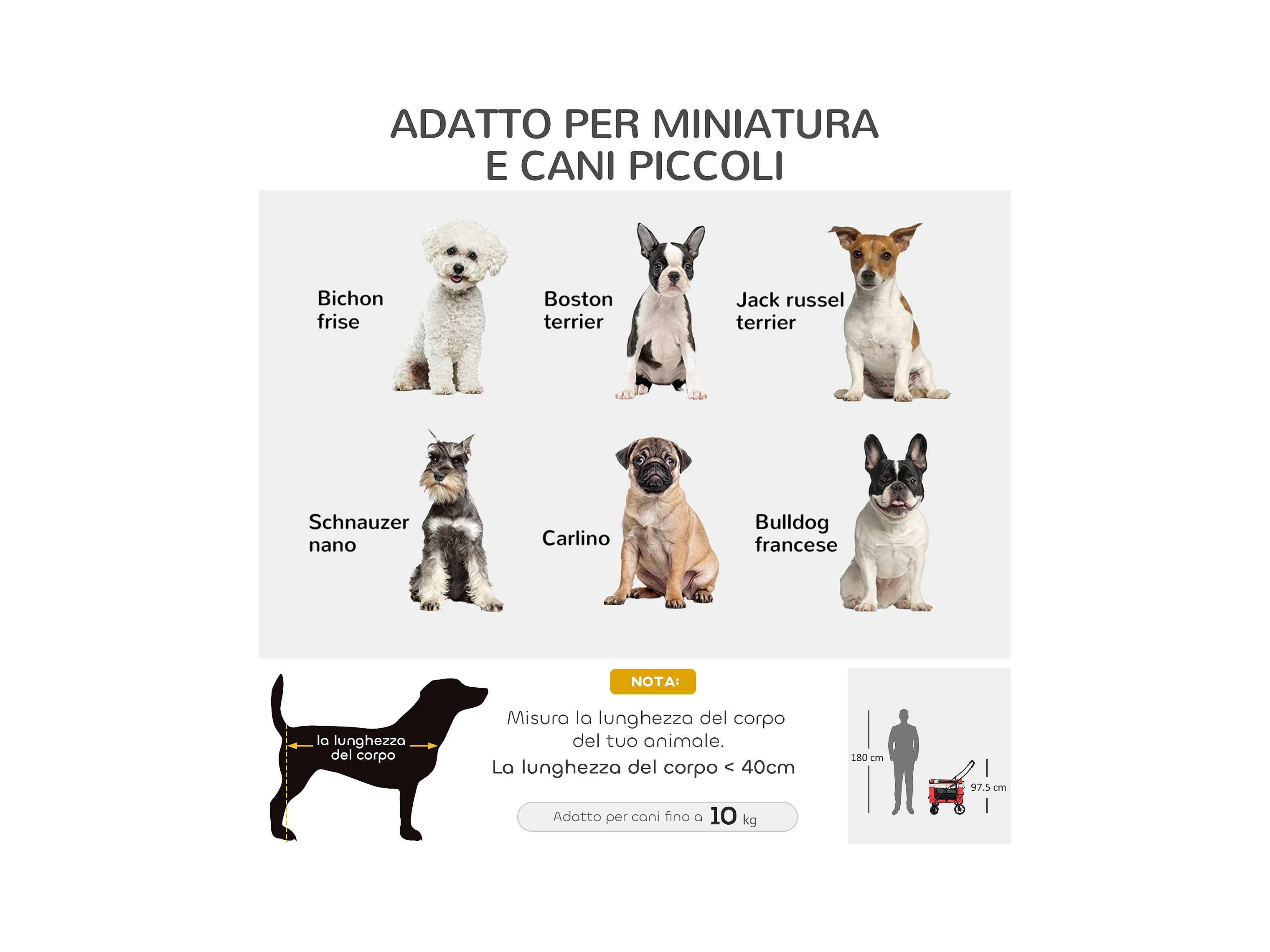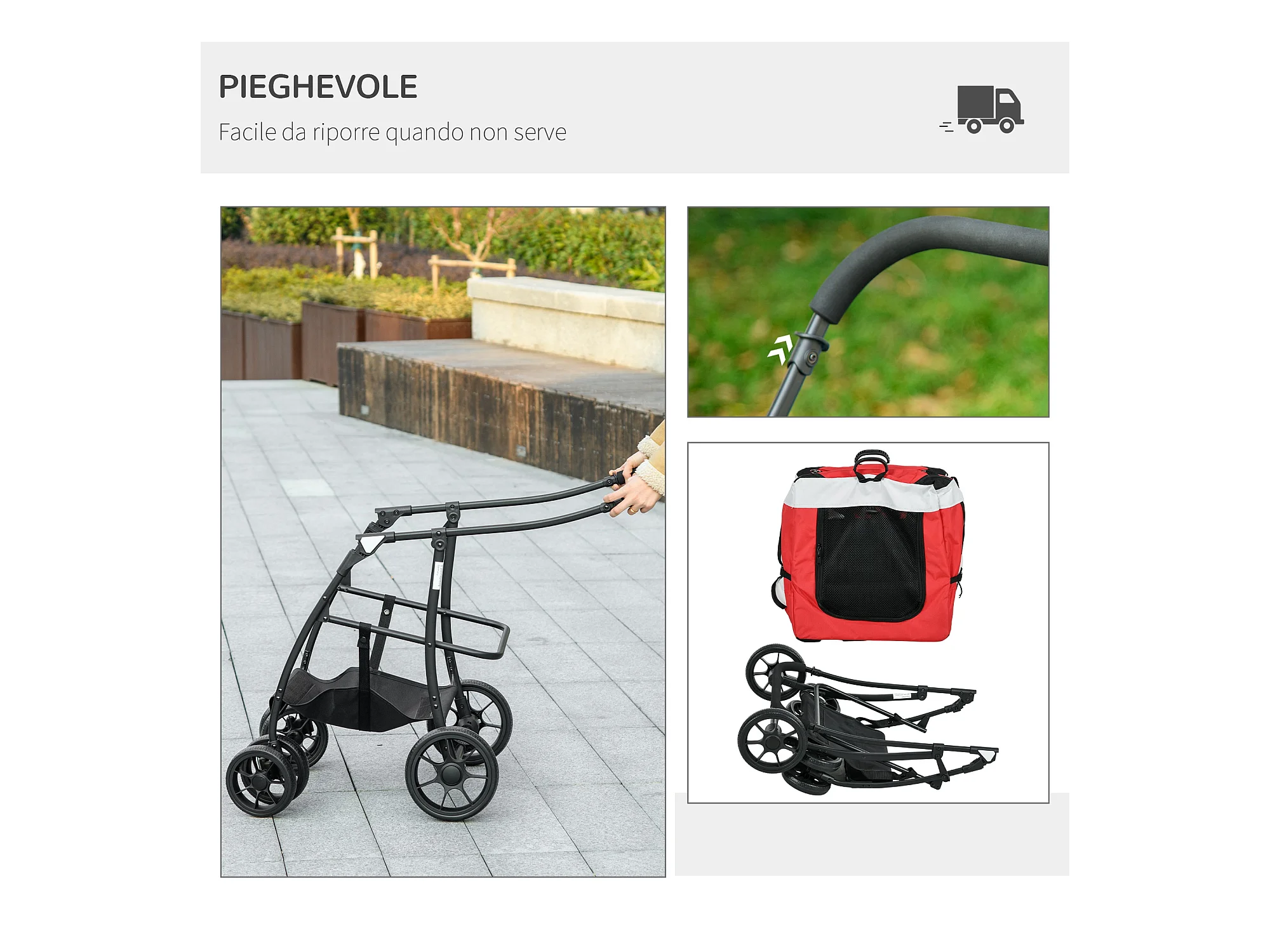 Passeggino per cani piccoli 15kg pieghevole rosso