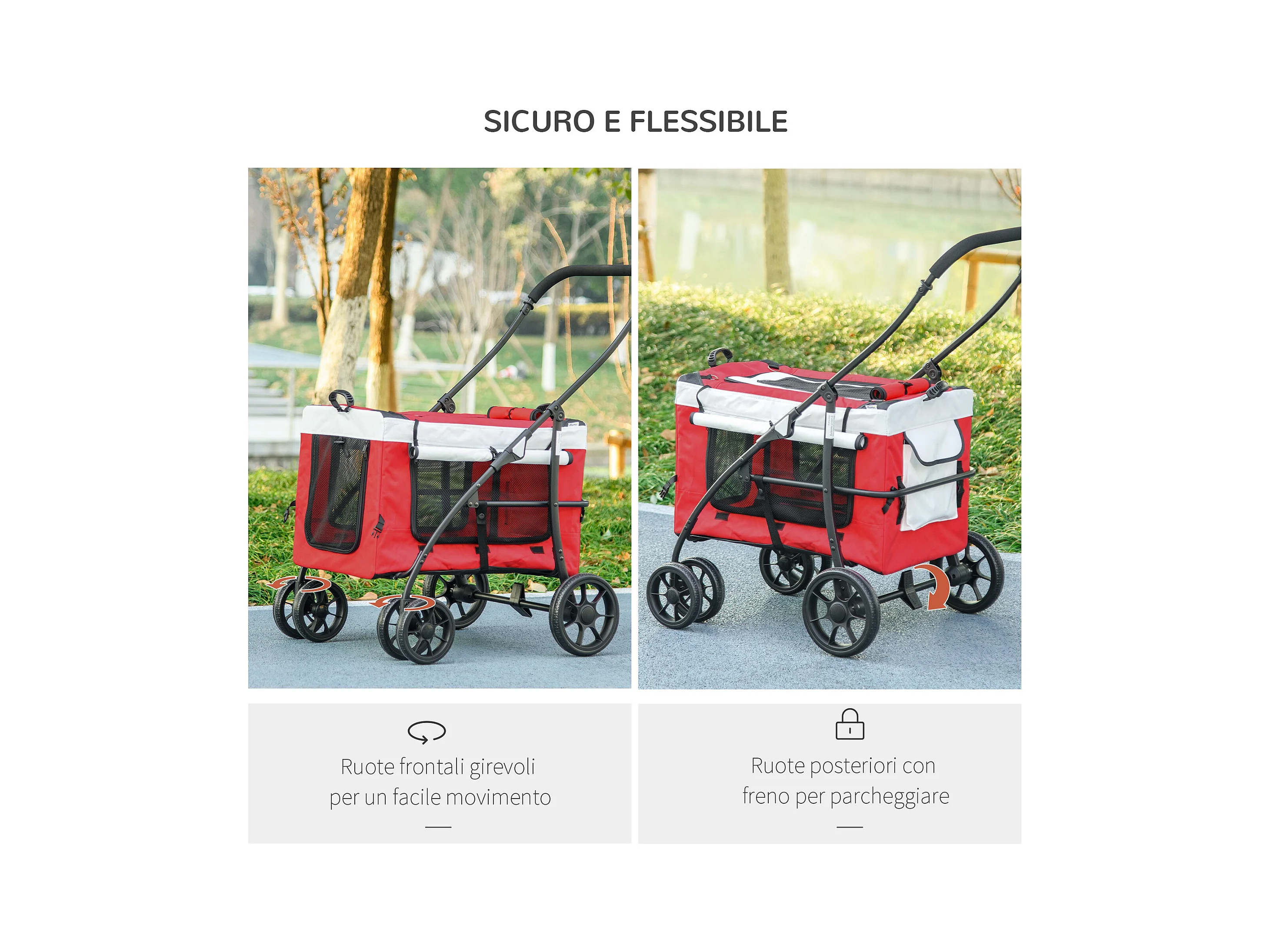 Passeggino per cani e gatti con ruote girevoli 75x45x97cm rosso