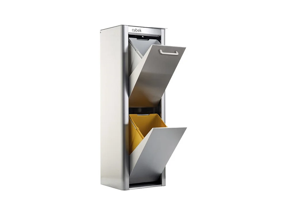 Pattumiera da cucina - Bidone per raccolta differenziata - 2 scomparti da 20L - Acciaio inox - CUBEK