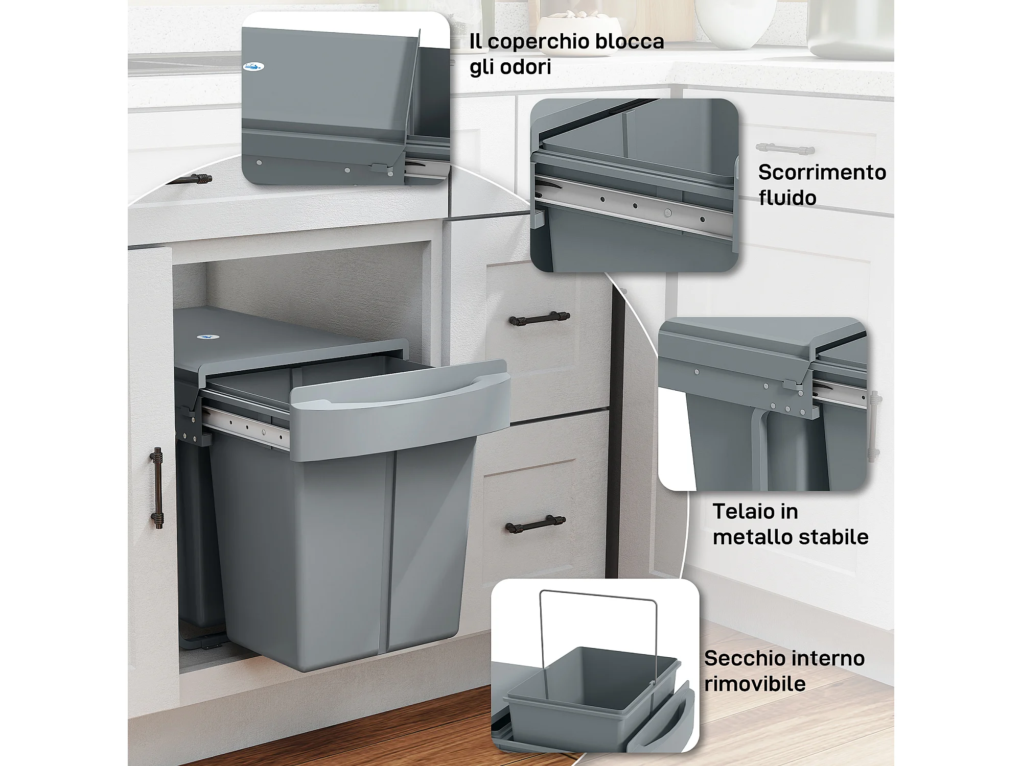 Pattumiera estraibile sottolavello per differenziata 2 secchi 20L+20L