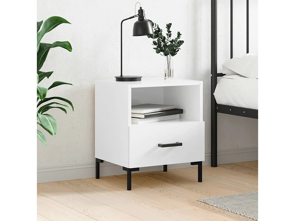 Leidir Comodino Bianco 40x35x47,5 cm in Legno Multistrato