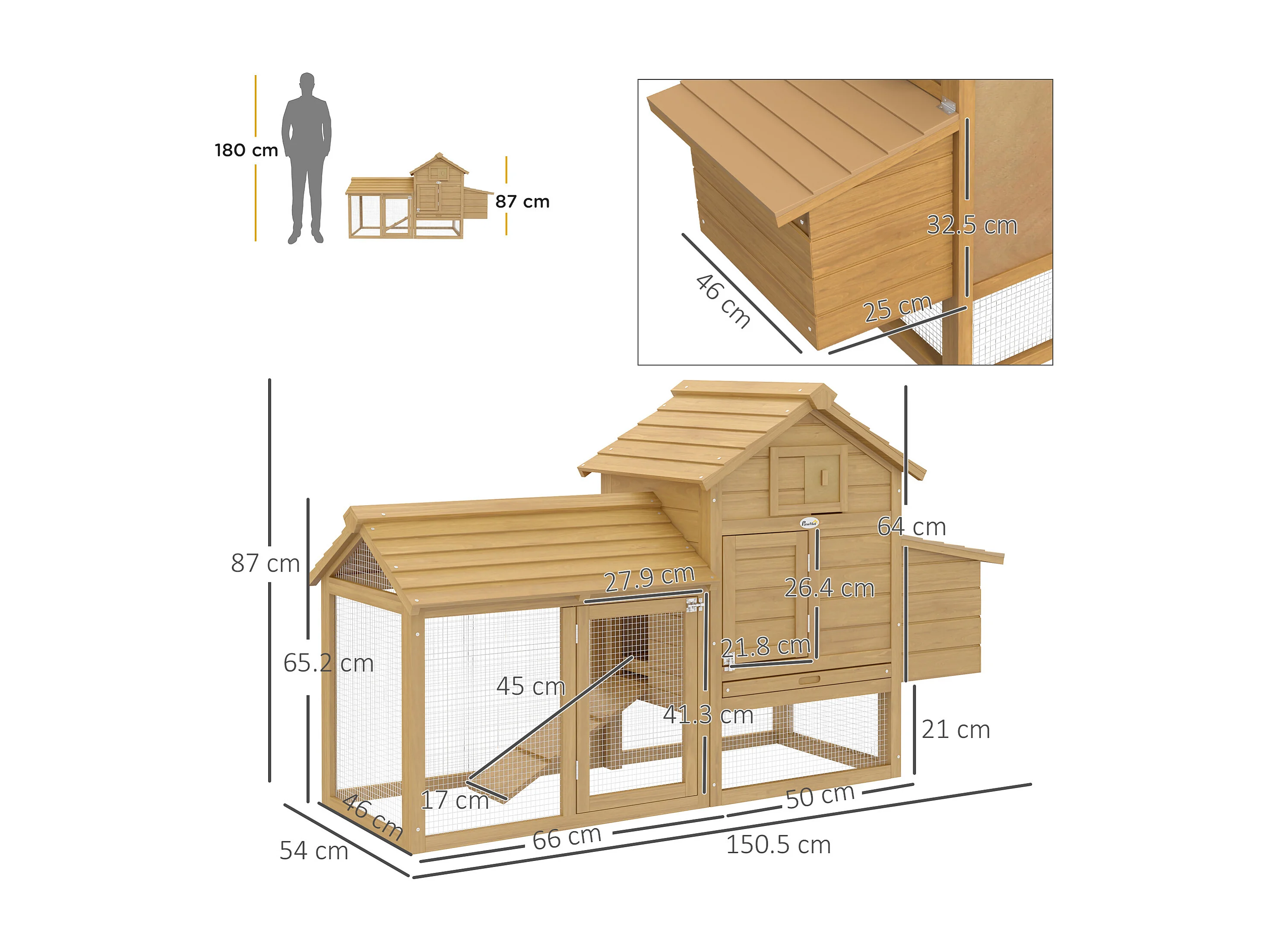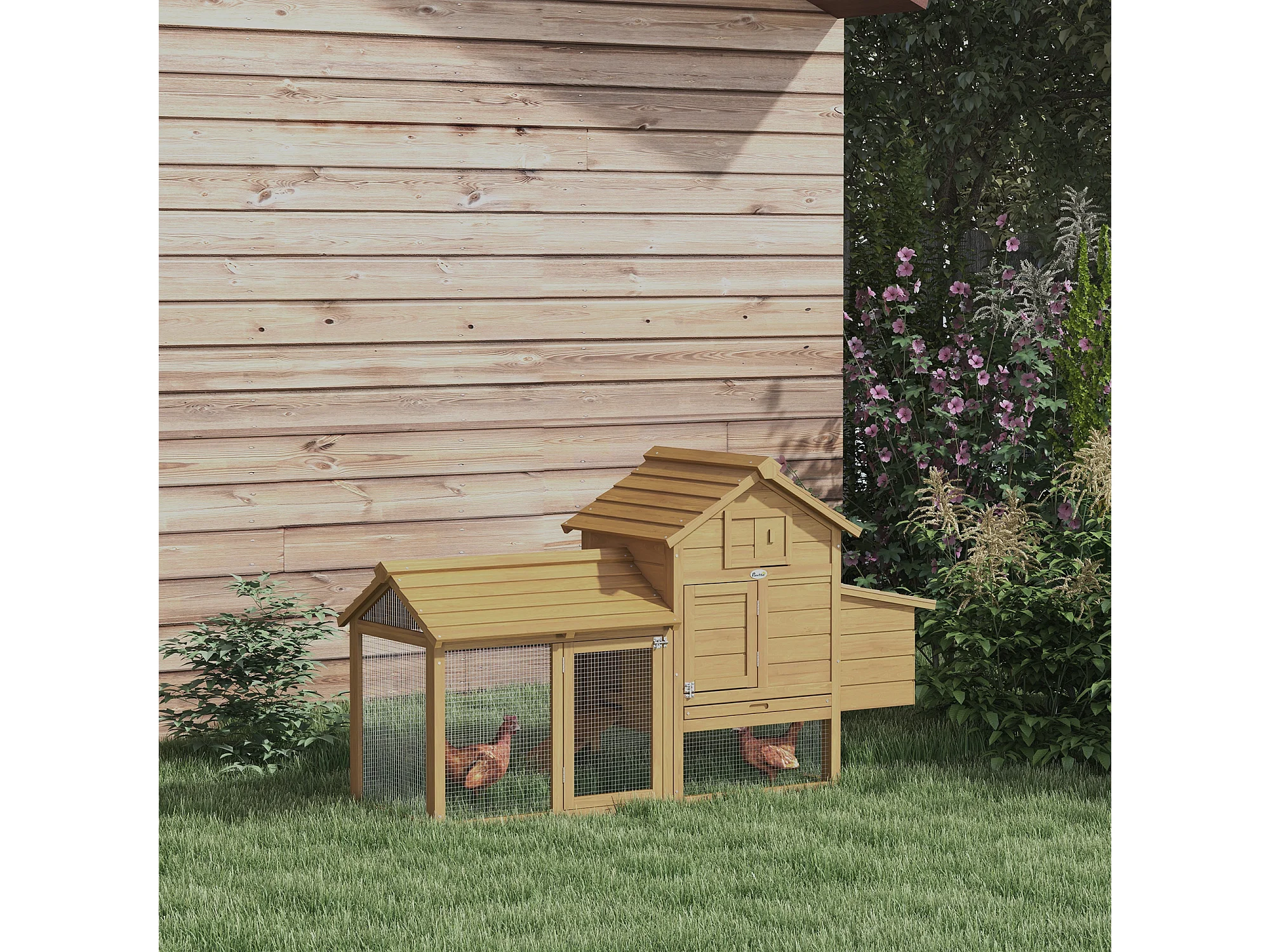 PawHut Pollaio in Legno Prefabbricato con Nido per la Cova e Casetta