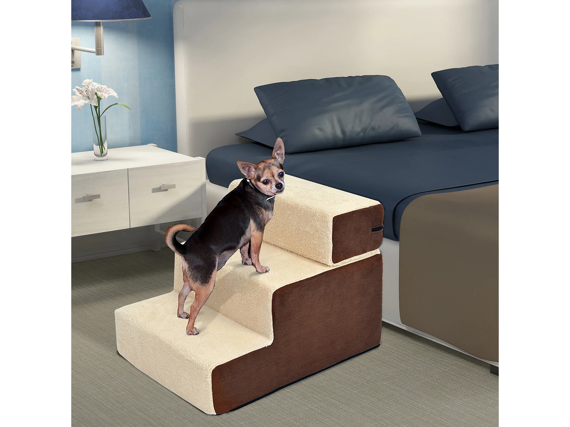 Scaletta per cani 3 gradini con tappetino antiscivolo e spazio interno