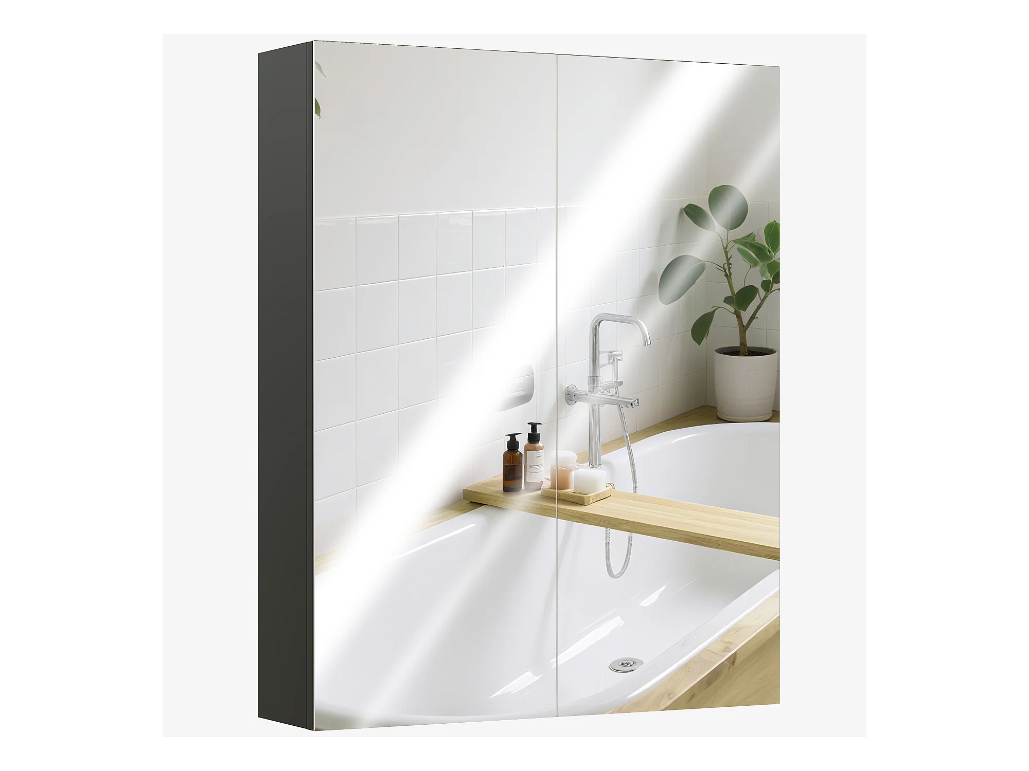 Pensile bagno a 2 ante con specchio e ripiani in mdf nero