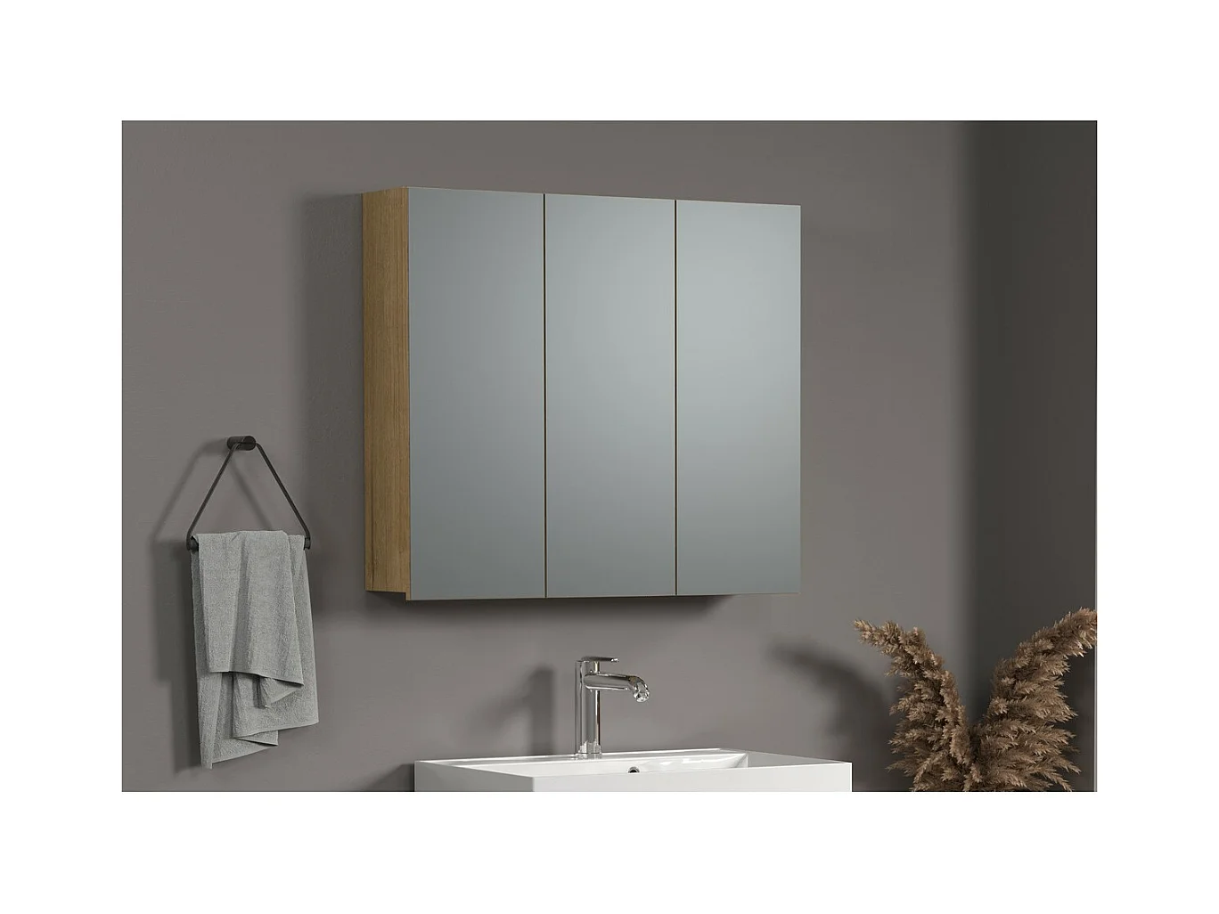 Pensile Bagno con Specchio Pure, Marrone, 90x80x20 cm, EPIKASA