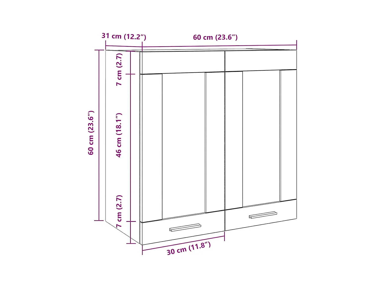 Pensile con Vetro “Lyon” Rovere Artigianale 80x31x60 cm