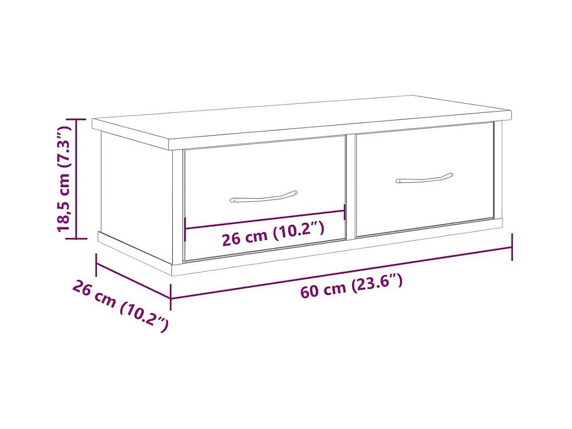 Pensile in legno vecchio 60x26x18,5 cm in legno ingegnerizzato