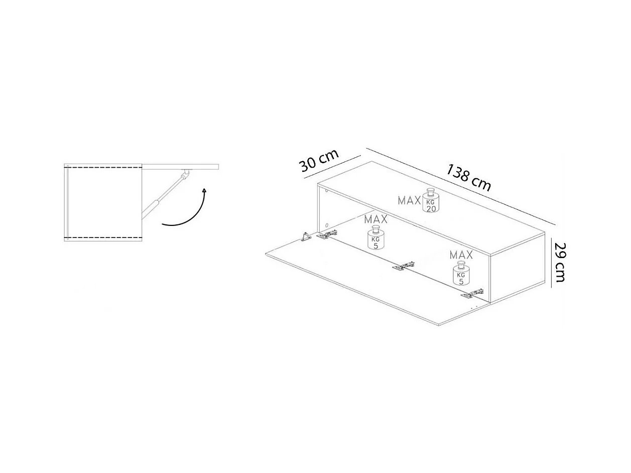 Pensile orizzontale con anta a vasistas 138x29 cm rovere scuro MML6