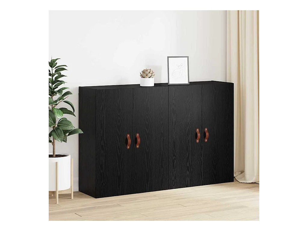 Pensili a 2 pezzi, neri, legno ingegnerizzato