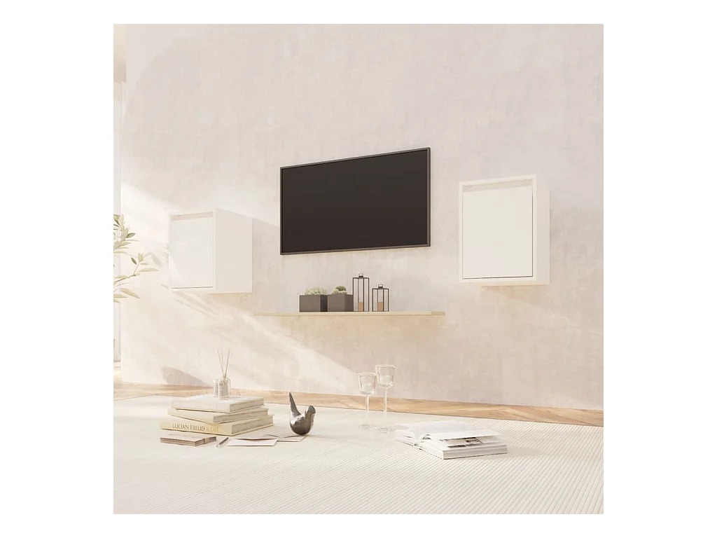 Pensili 2 pz Bianco 30x30x40 cm Legno massello di pino