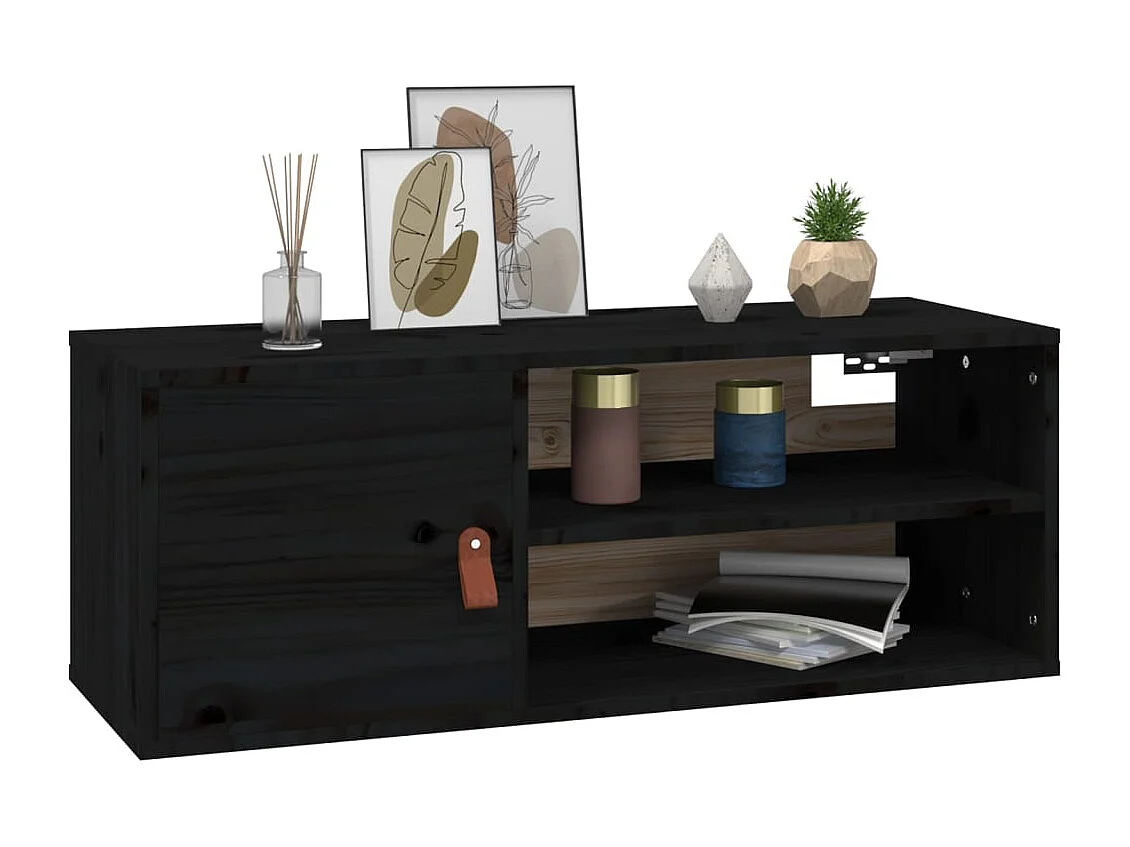 Pensile Nero 80x30x30 cm in Legno Massello di Pino