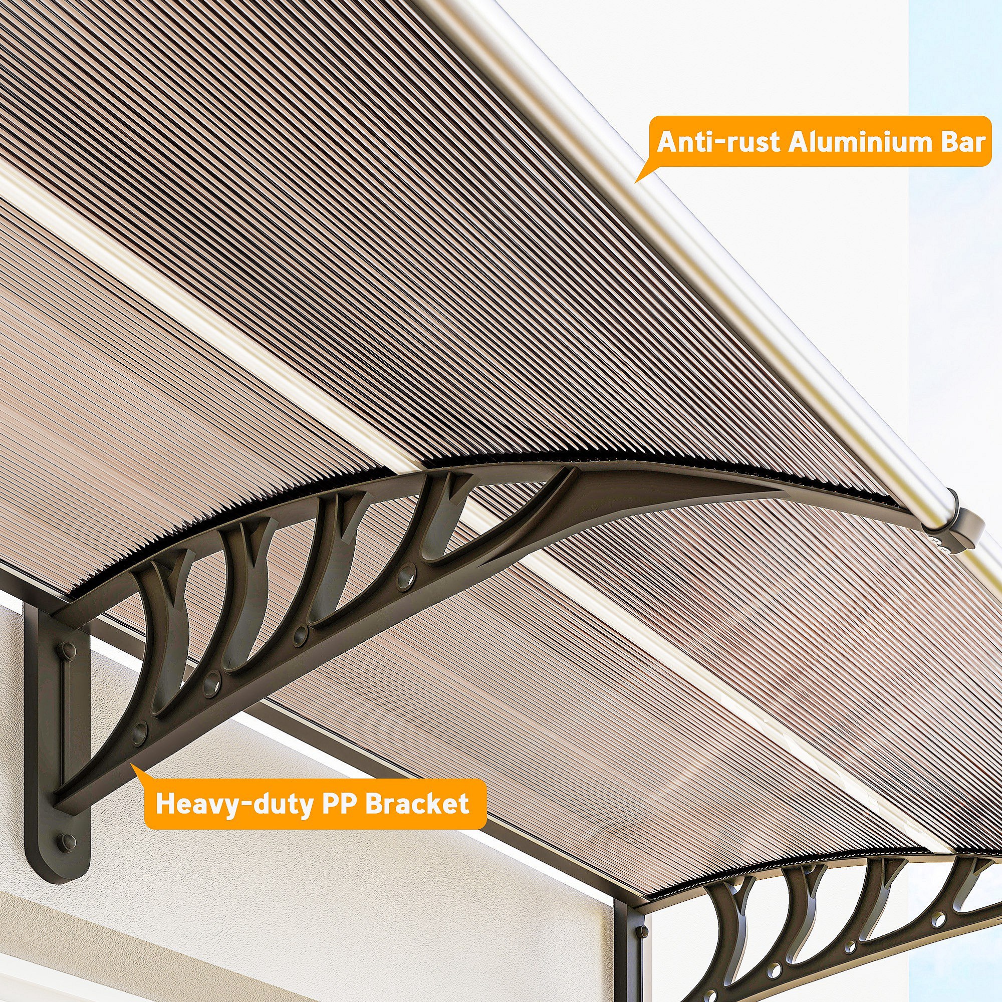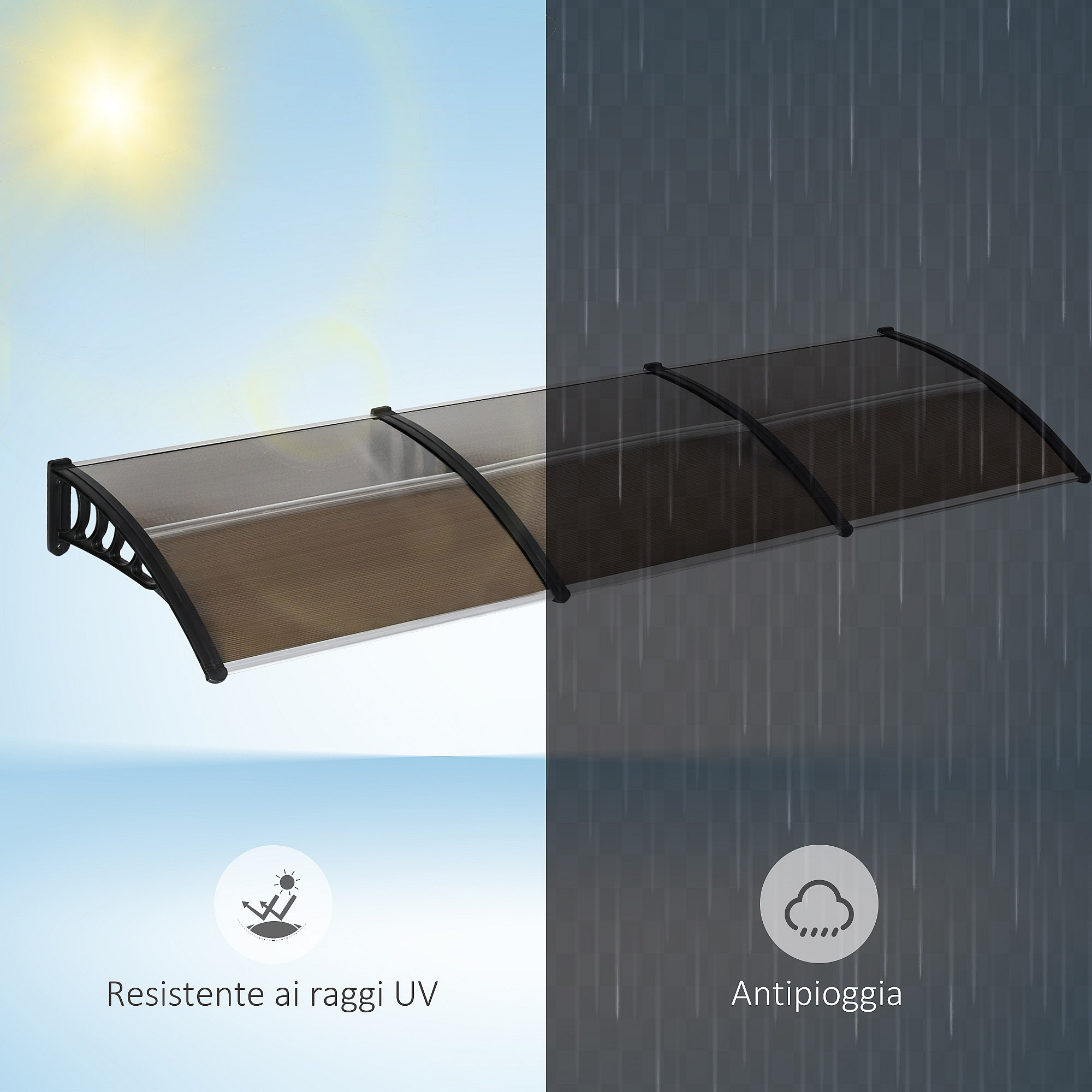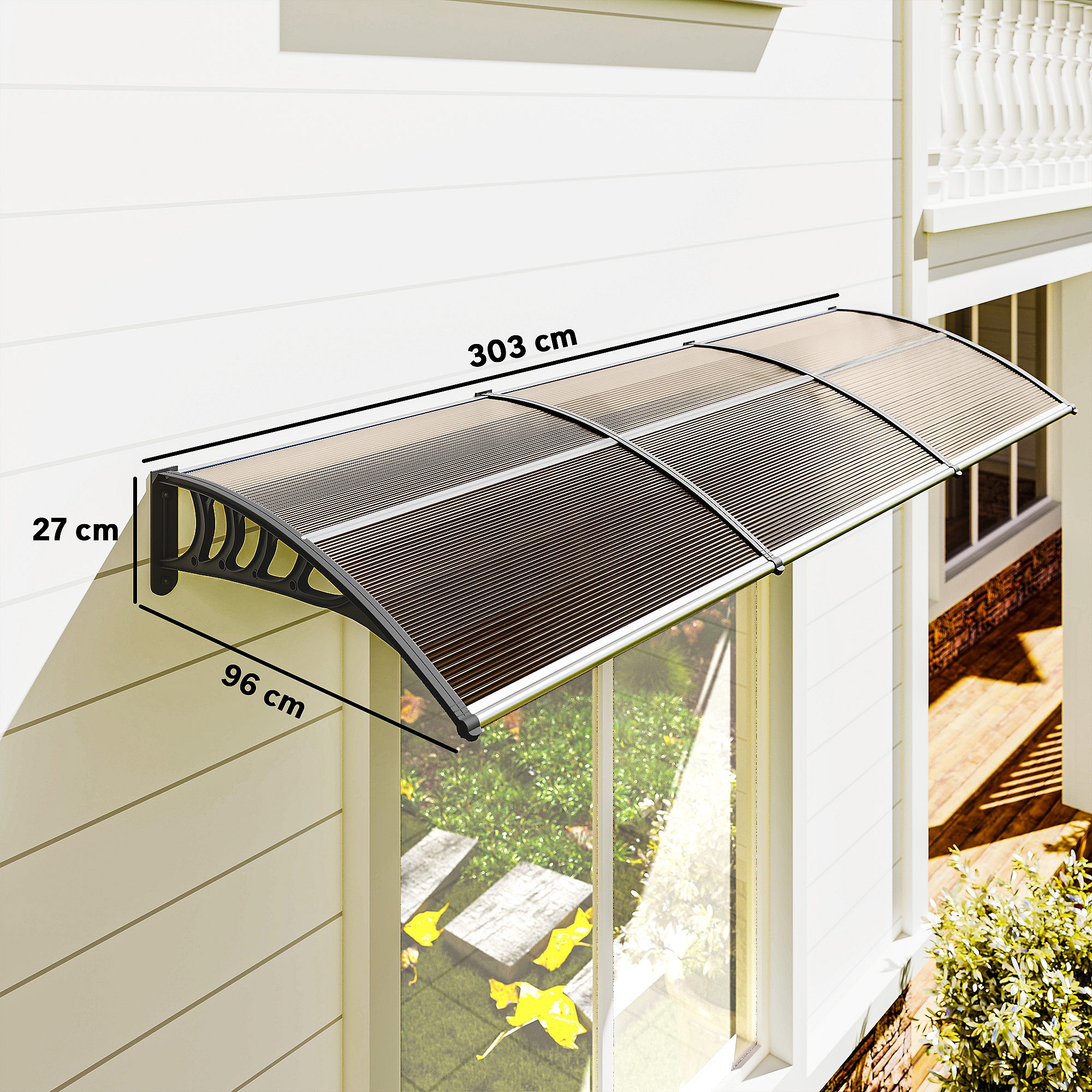 Pensilina da esterno in policarbonato 303x100x26cm marrone