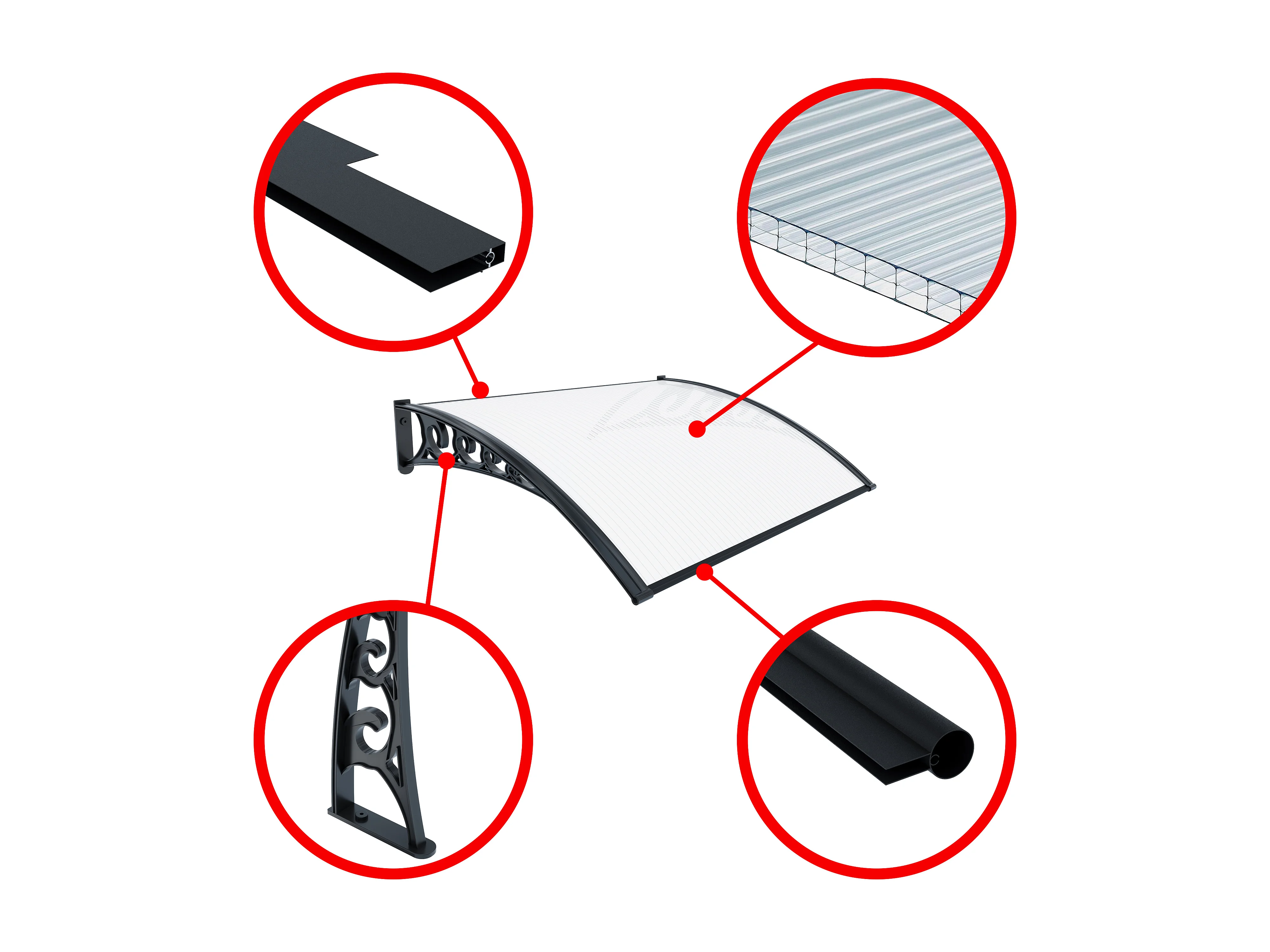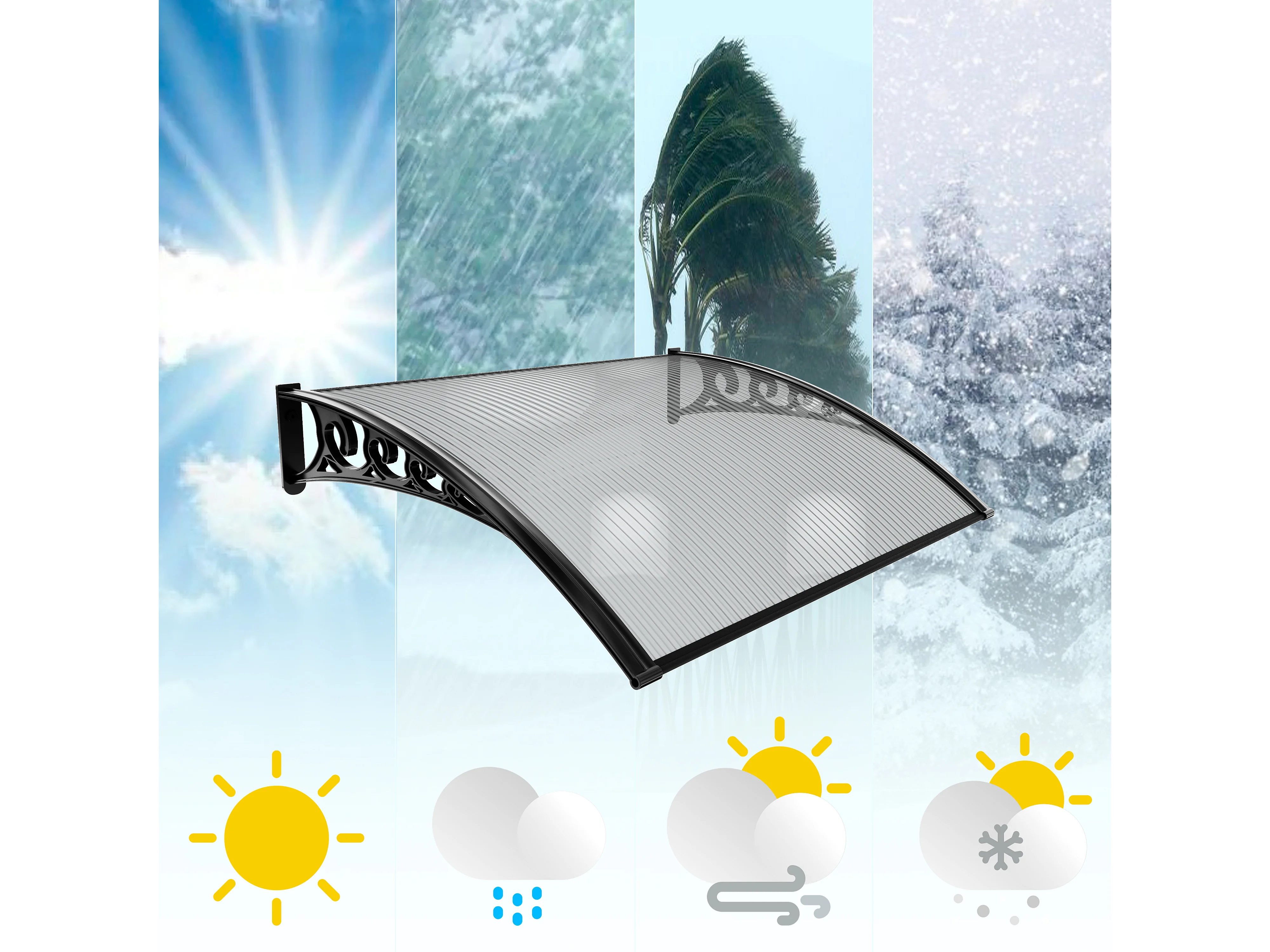 Pensilina Per Copertura In Policarbonato Alveolare Tettoia Modulabile Per Esterno Per Porte Balcone Finestre Elegante E Resistente, Trasparente (100 x 200 Cm)