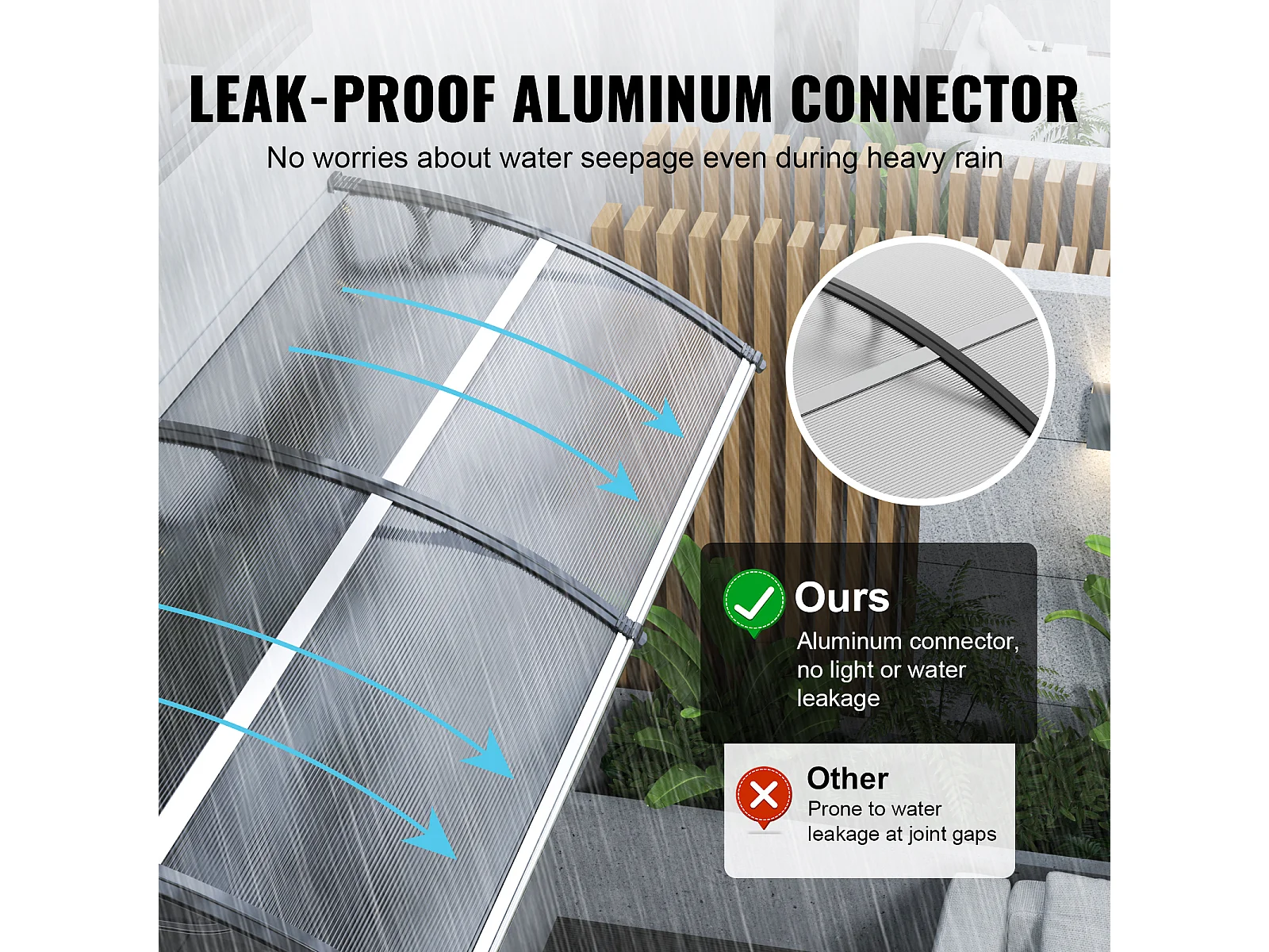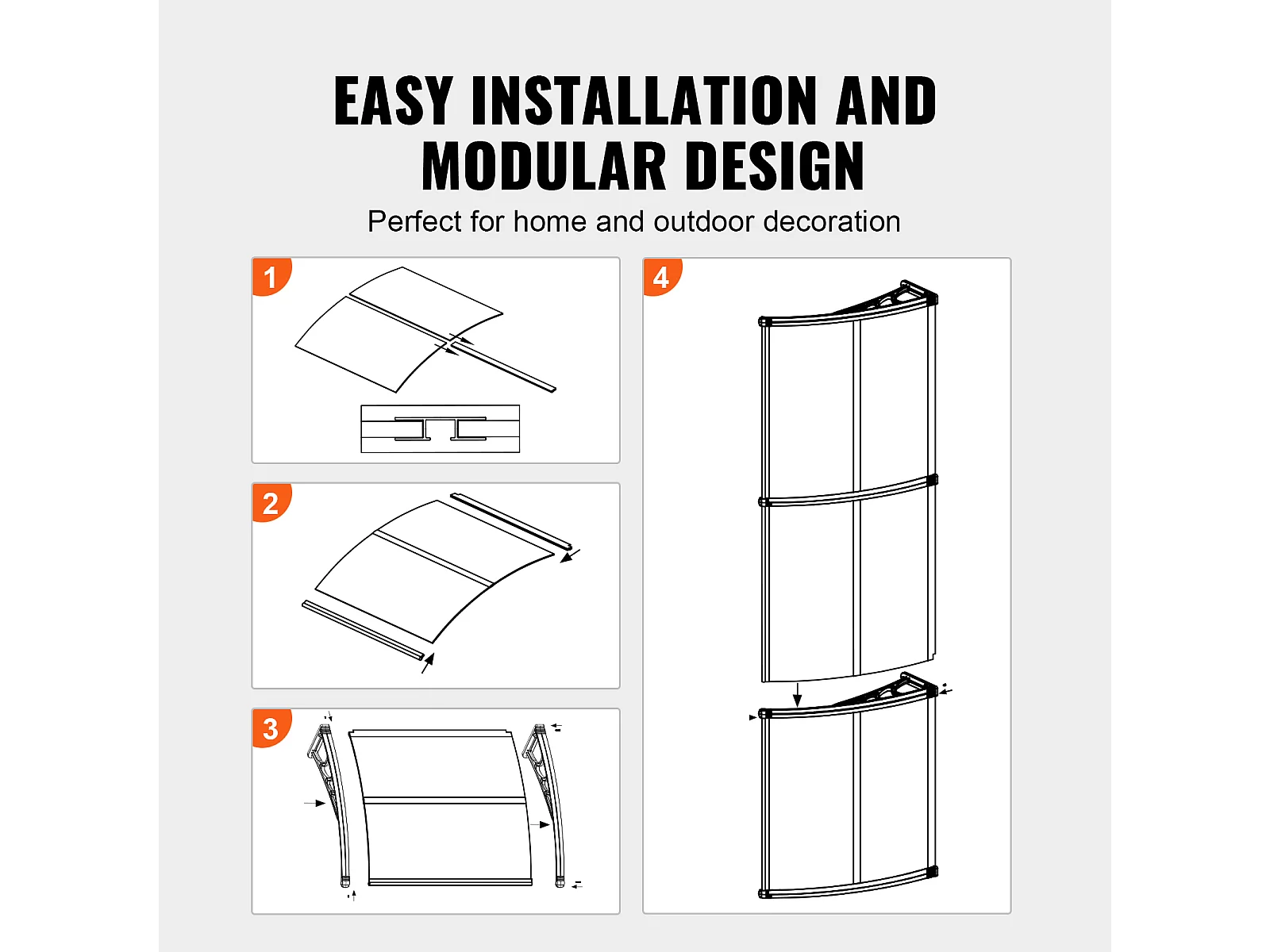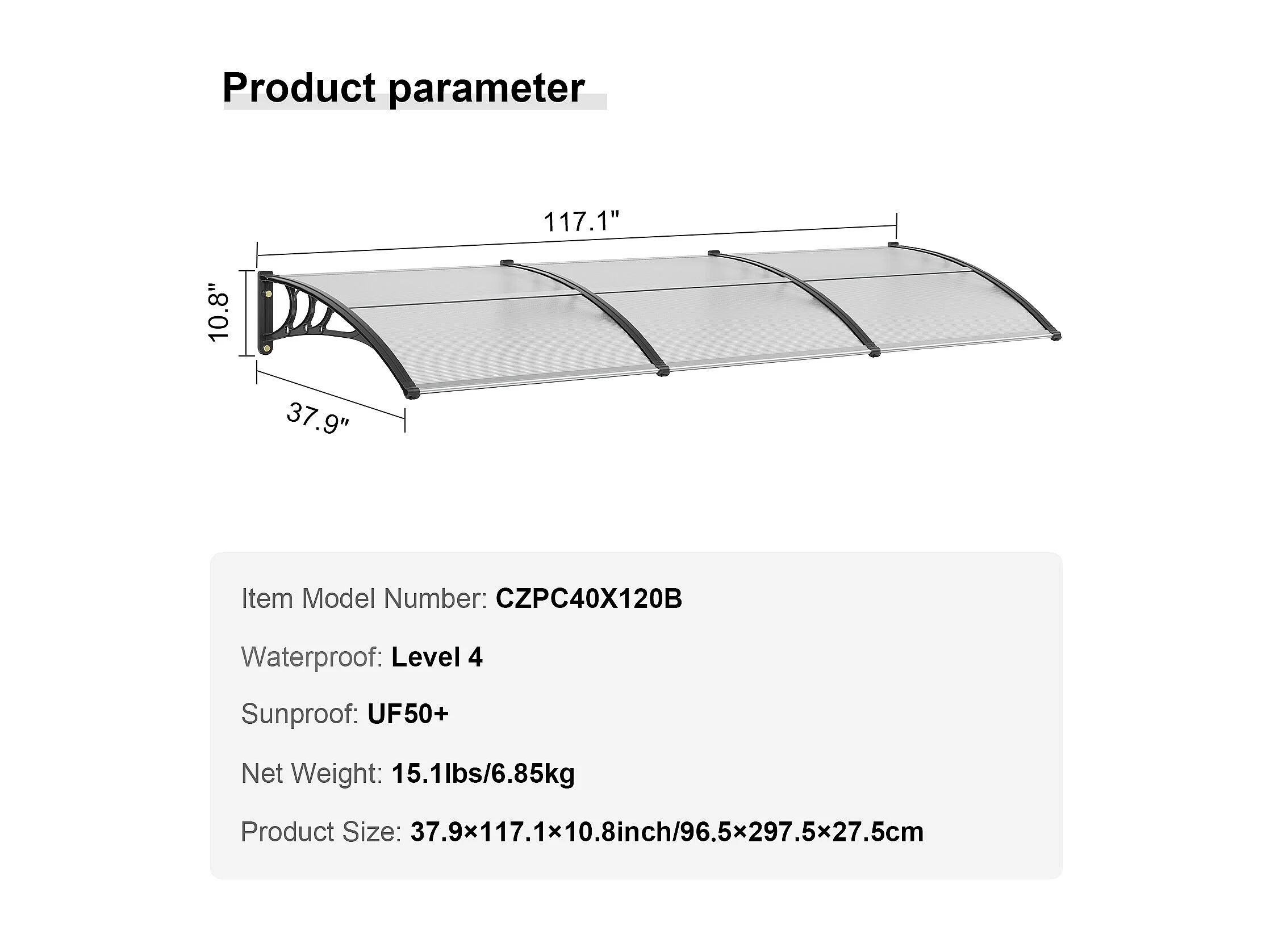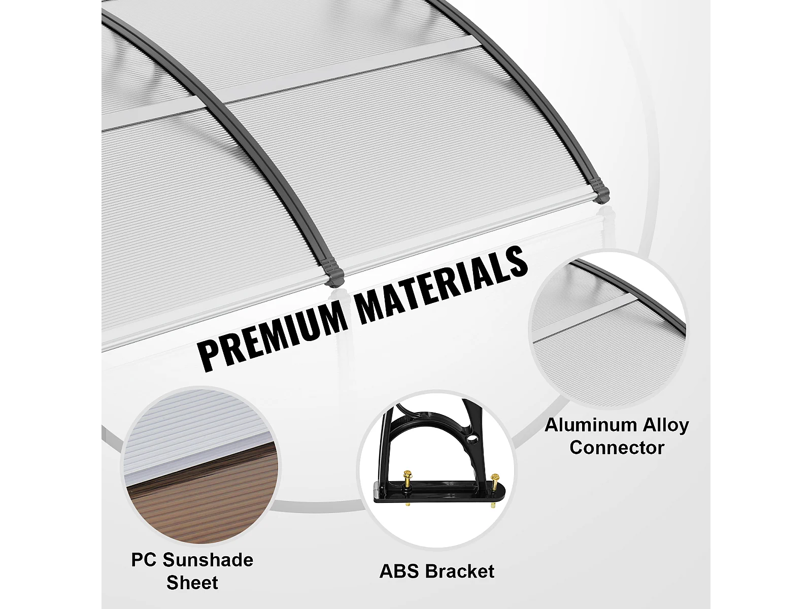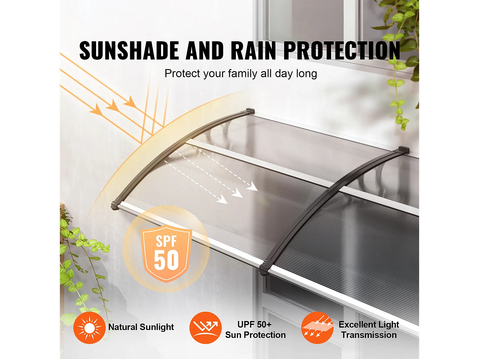 Pensilina Per Porta D'ingresso SucceBuy Pensilina Per Porta E Finestra, Protezione Contro Pioggia E UV, Lastra PC Trasparente 96,5 x 294,5 cm