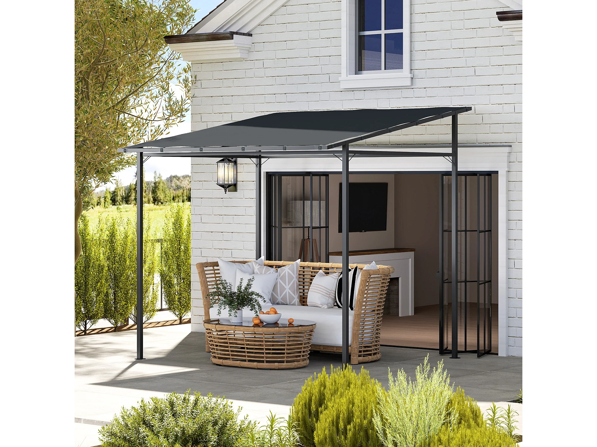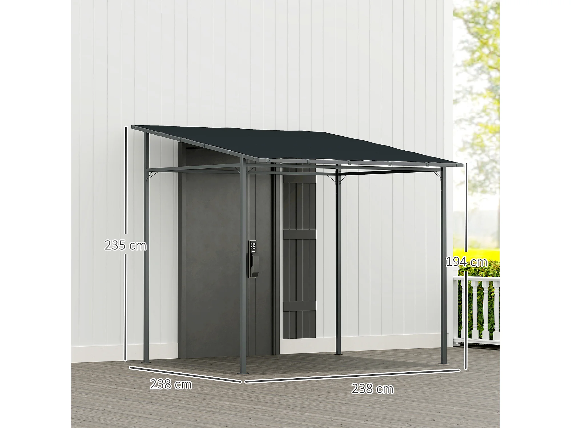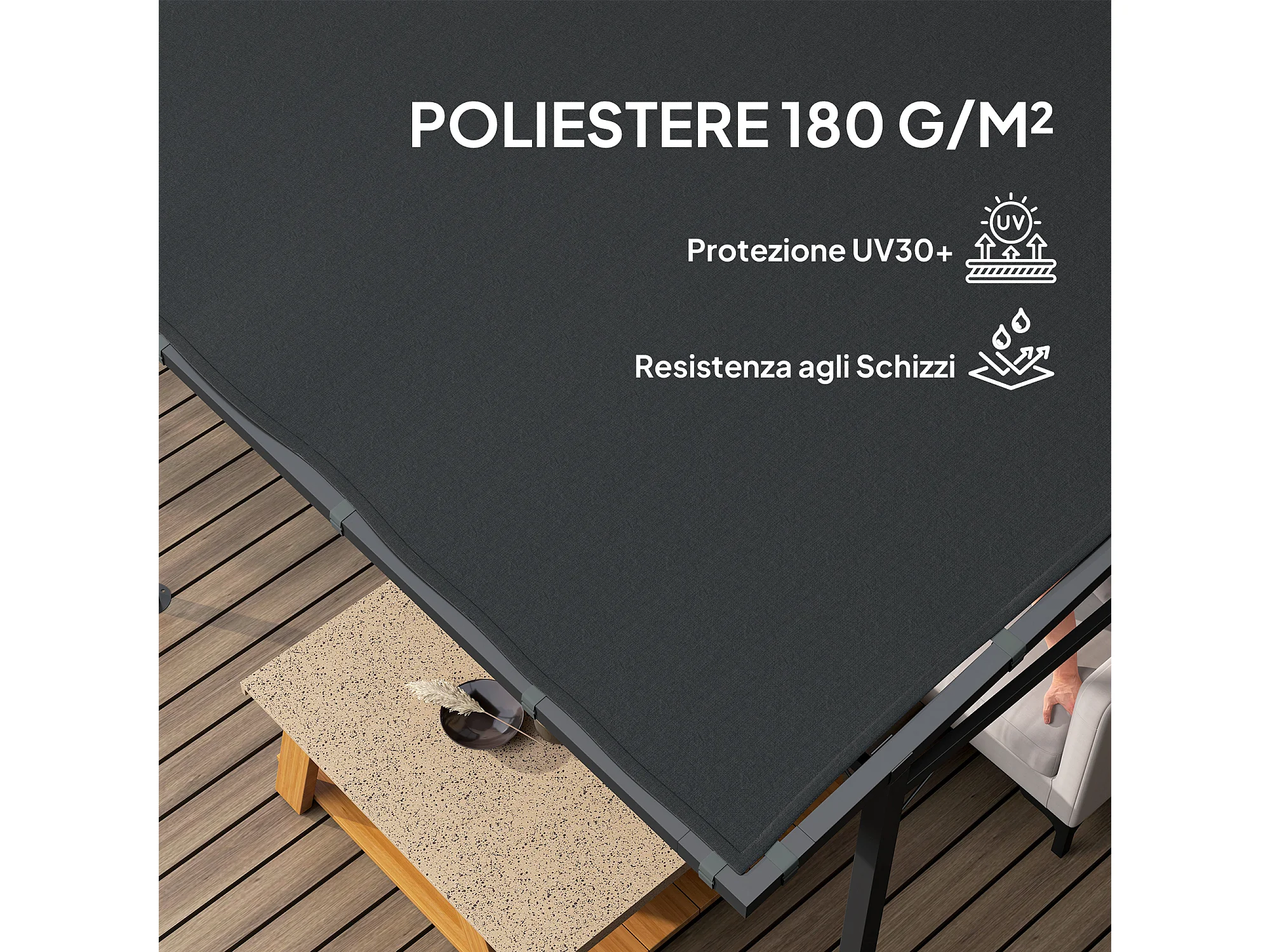 Pergola addossata con chiusure a strappo in metallo poliestere grigia