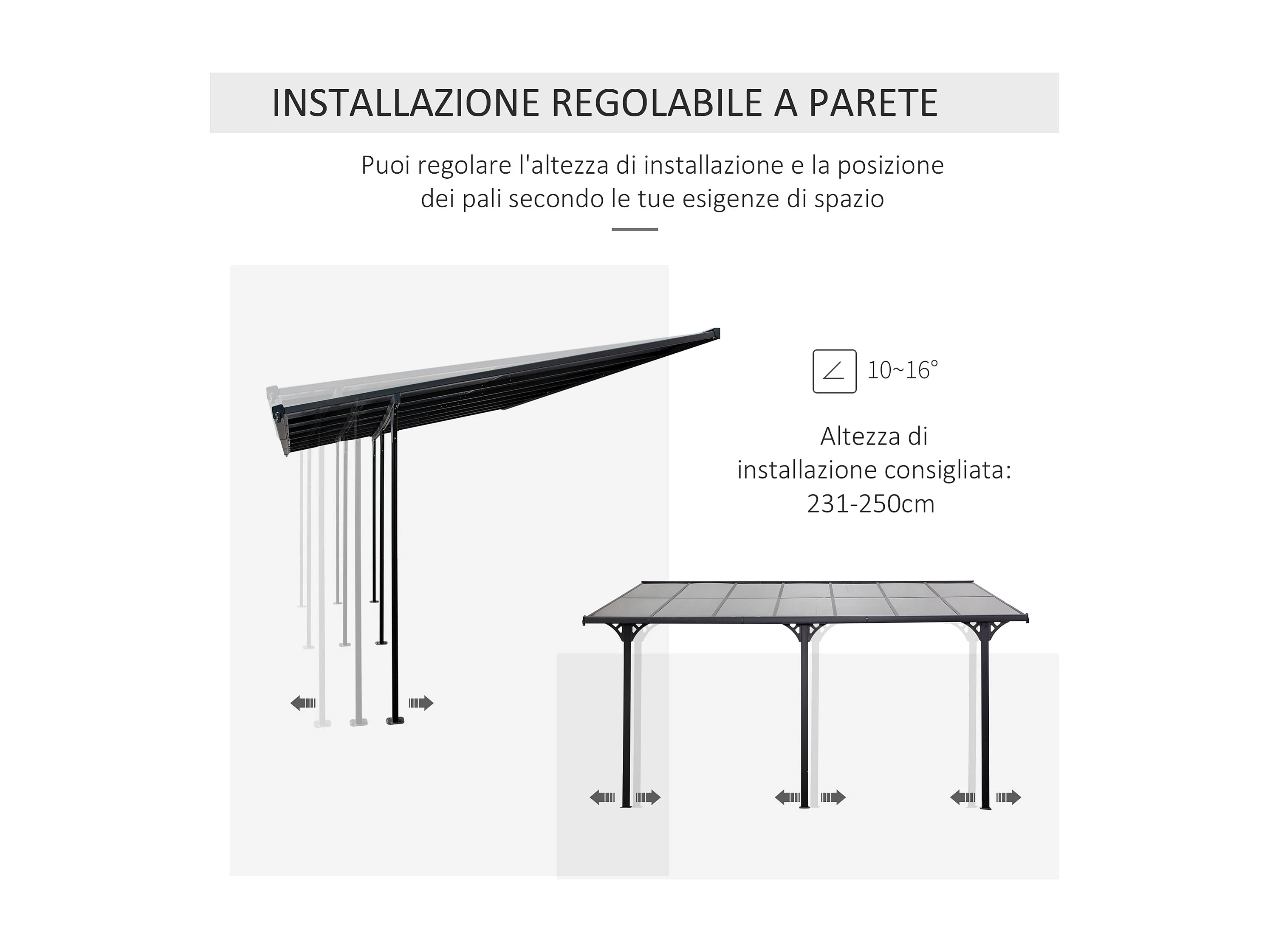 Pergola addossata da giardino in policarbonato 4.4x3m