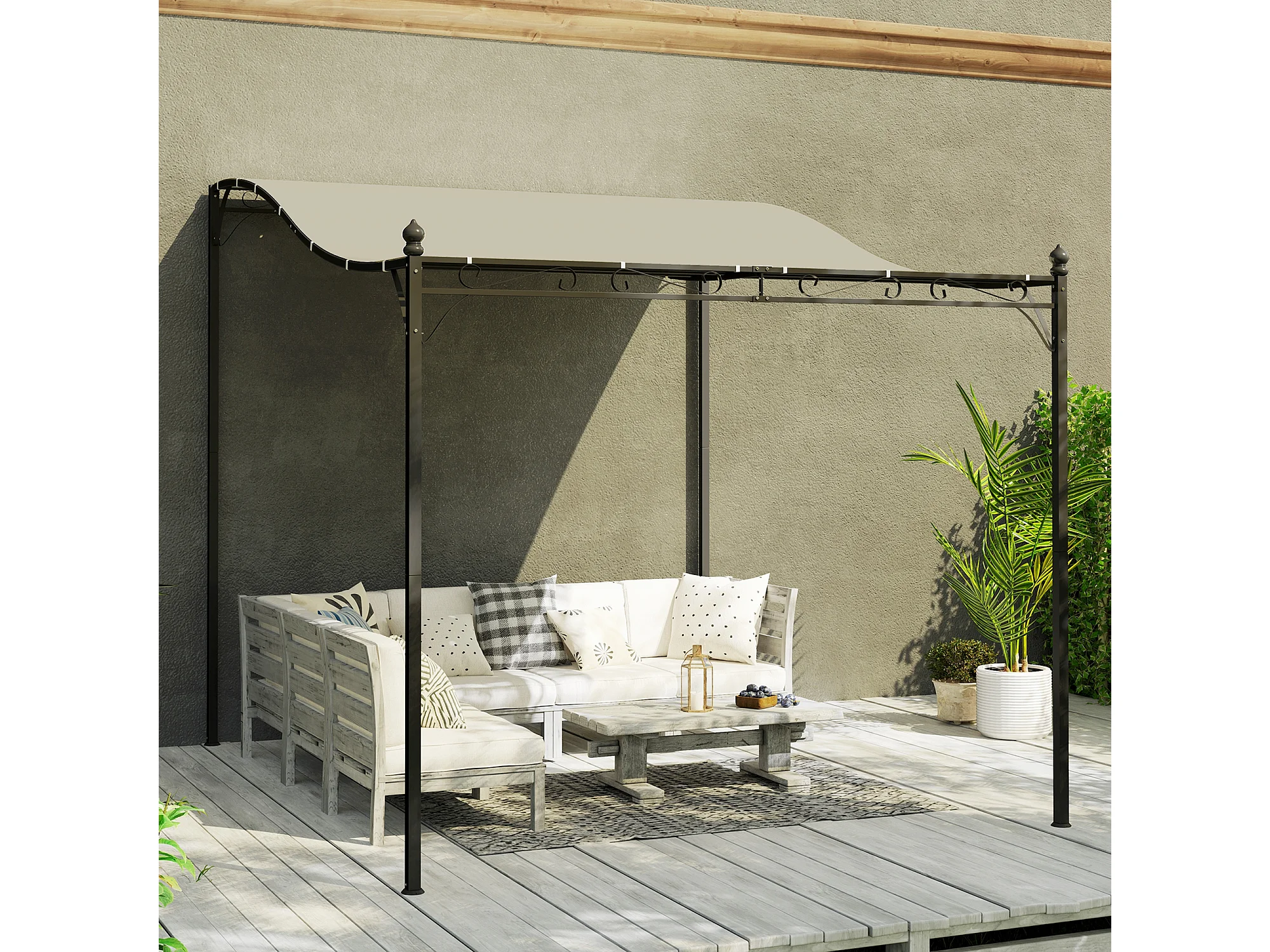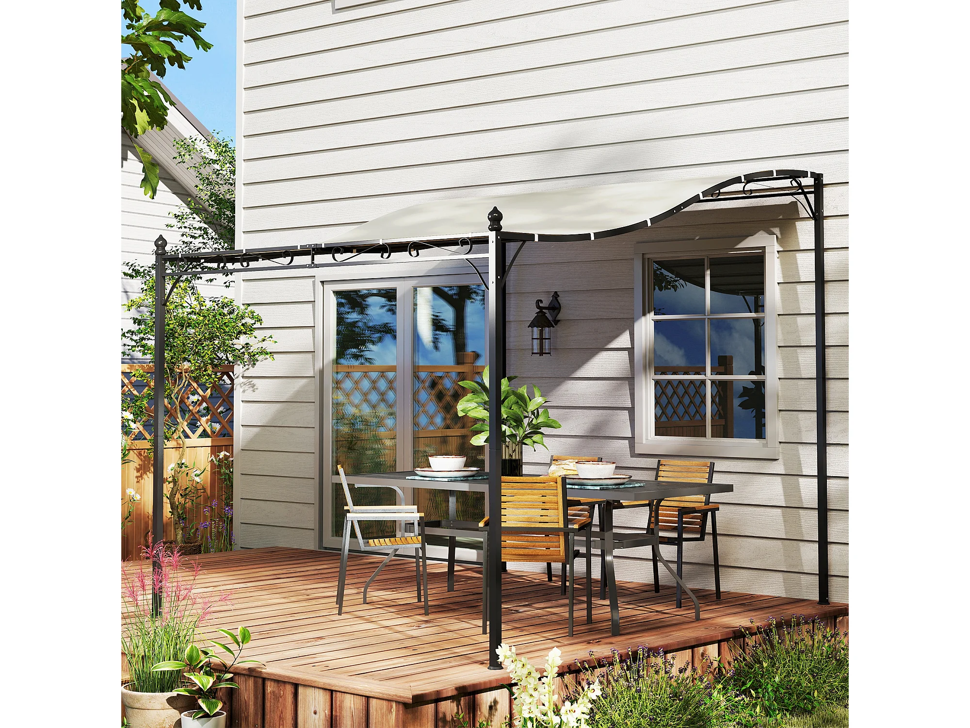 Pergola addossata ricurva in metallo e poliestere bianco crema