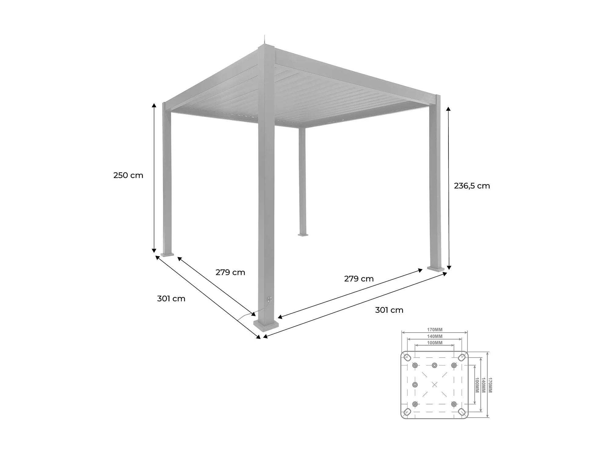 Pergola bioclimatica 3x3m elettrica in alluminio con illuminazione