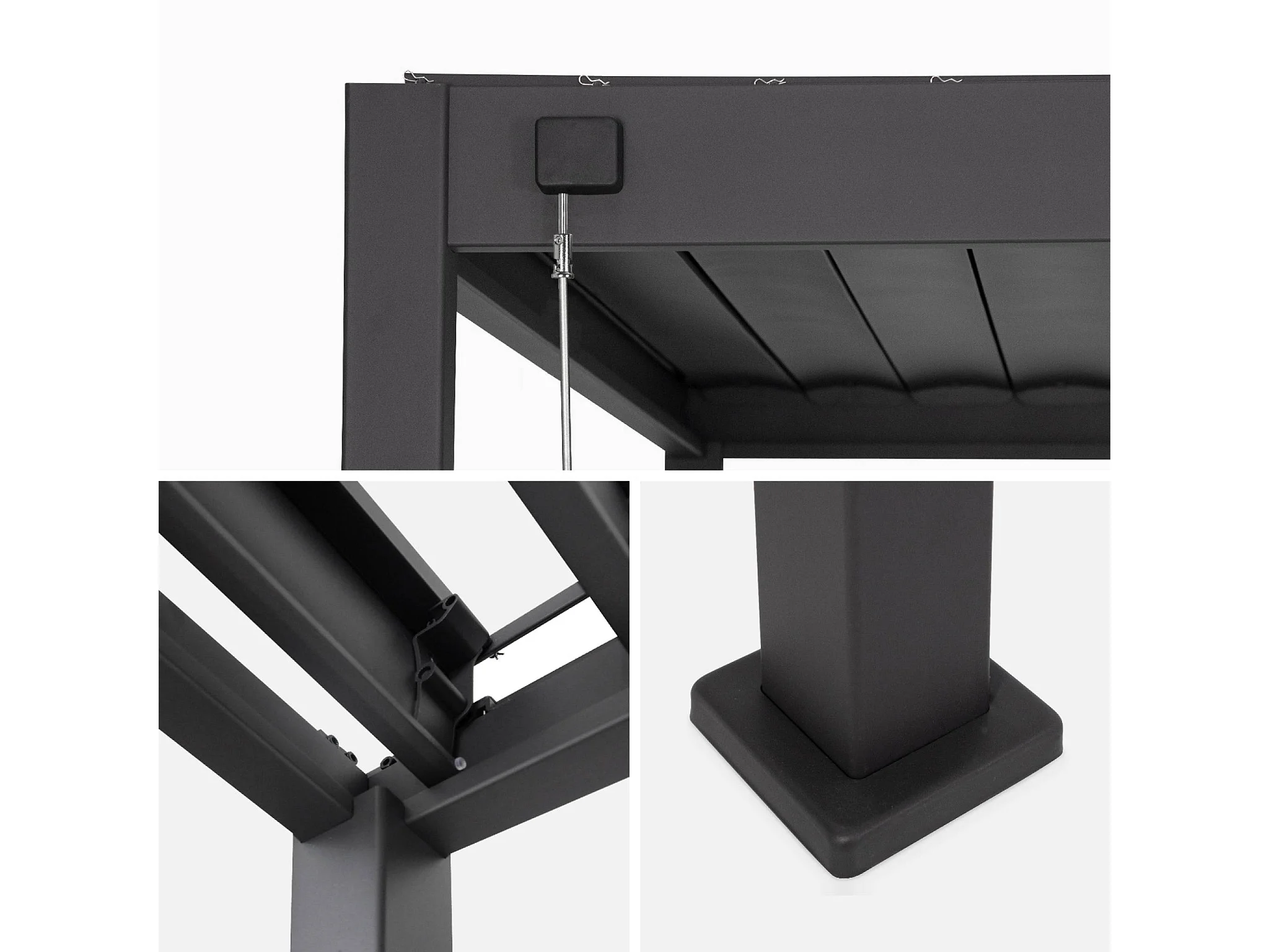 Pergola bioclimatica 3x4 in alluminio + 3 tende da 1m, antracite