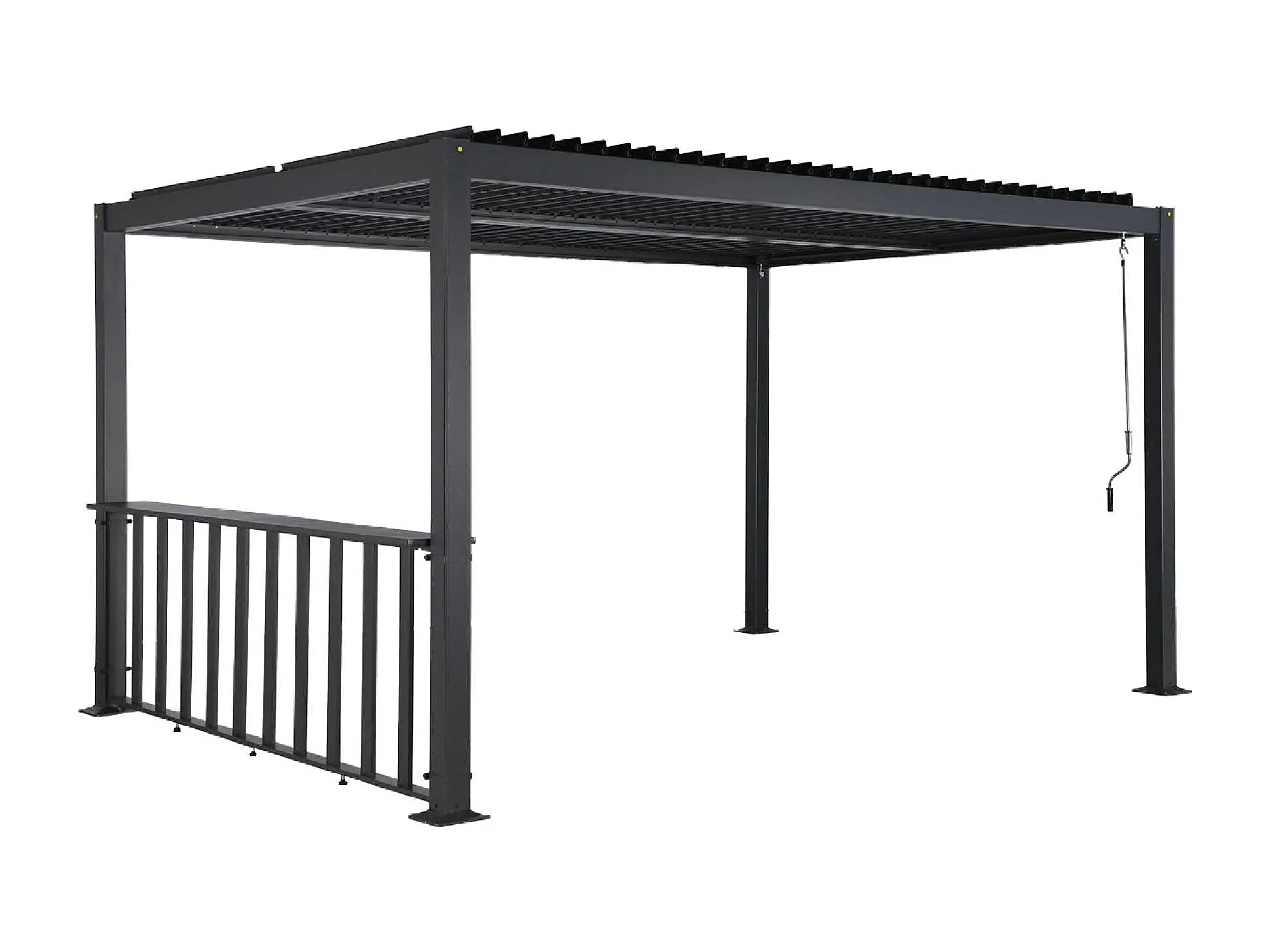 Pergola bioclimatica 3x4m in alluminio e acciaio + bar 3m, antracite