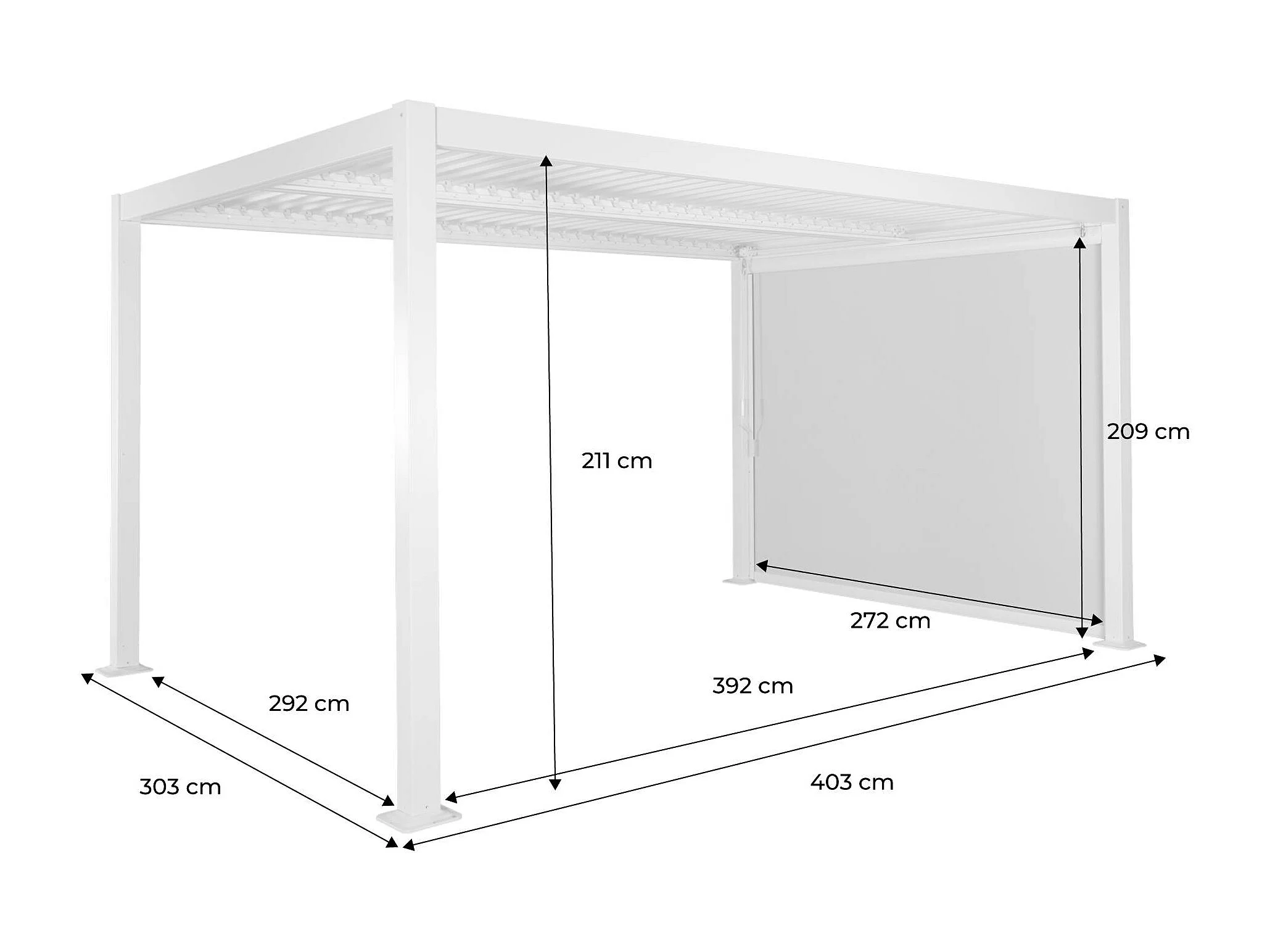 Pergola bioclimatica 3x4m in alluminio e acciaio + tenda 3m, nero