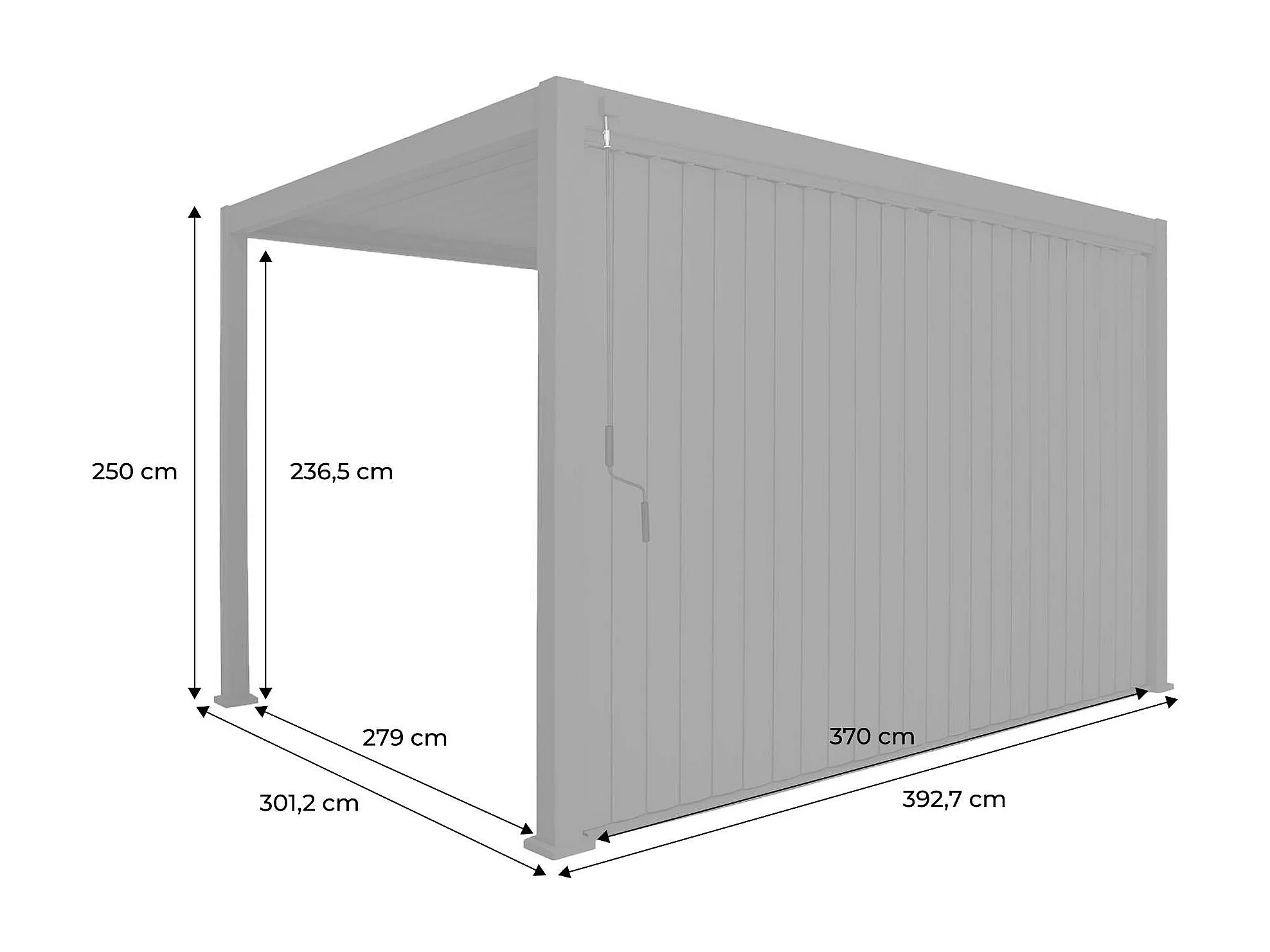 Pergola bioclimatica 3x4m in alluminio + pannello verticale 4m,