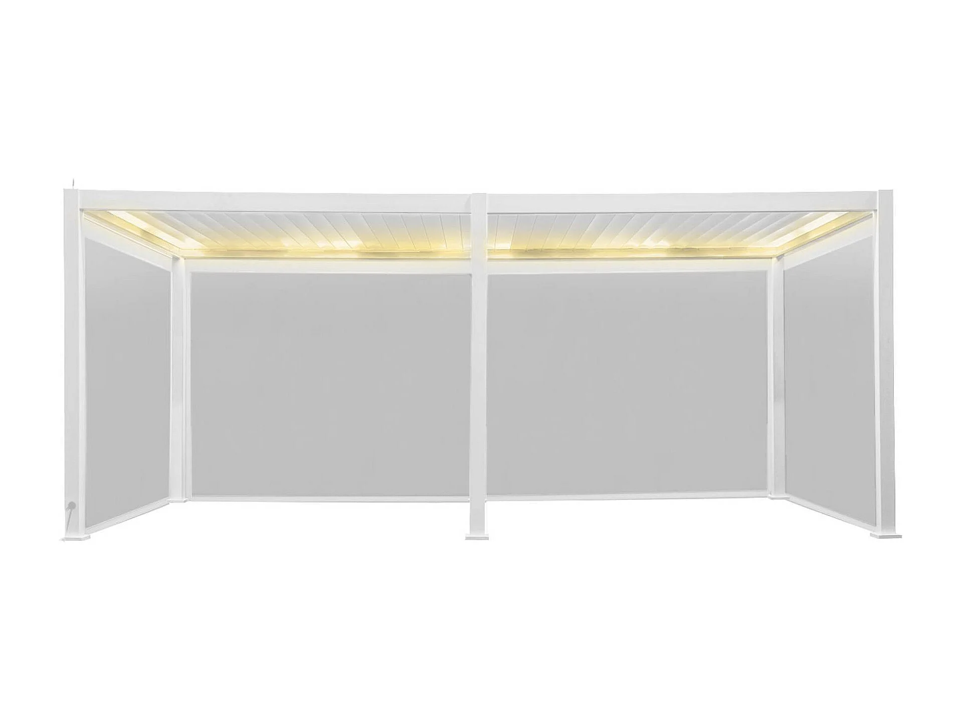 Pergola bioclimatica 3x4 in alluminio + 3 tende da 100cm, bianco