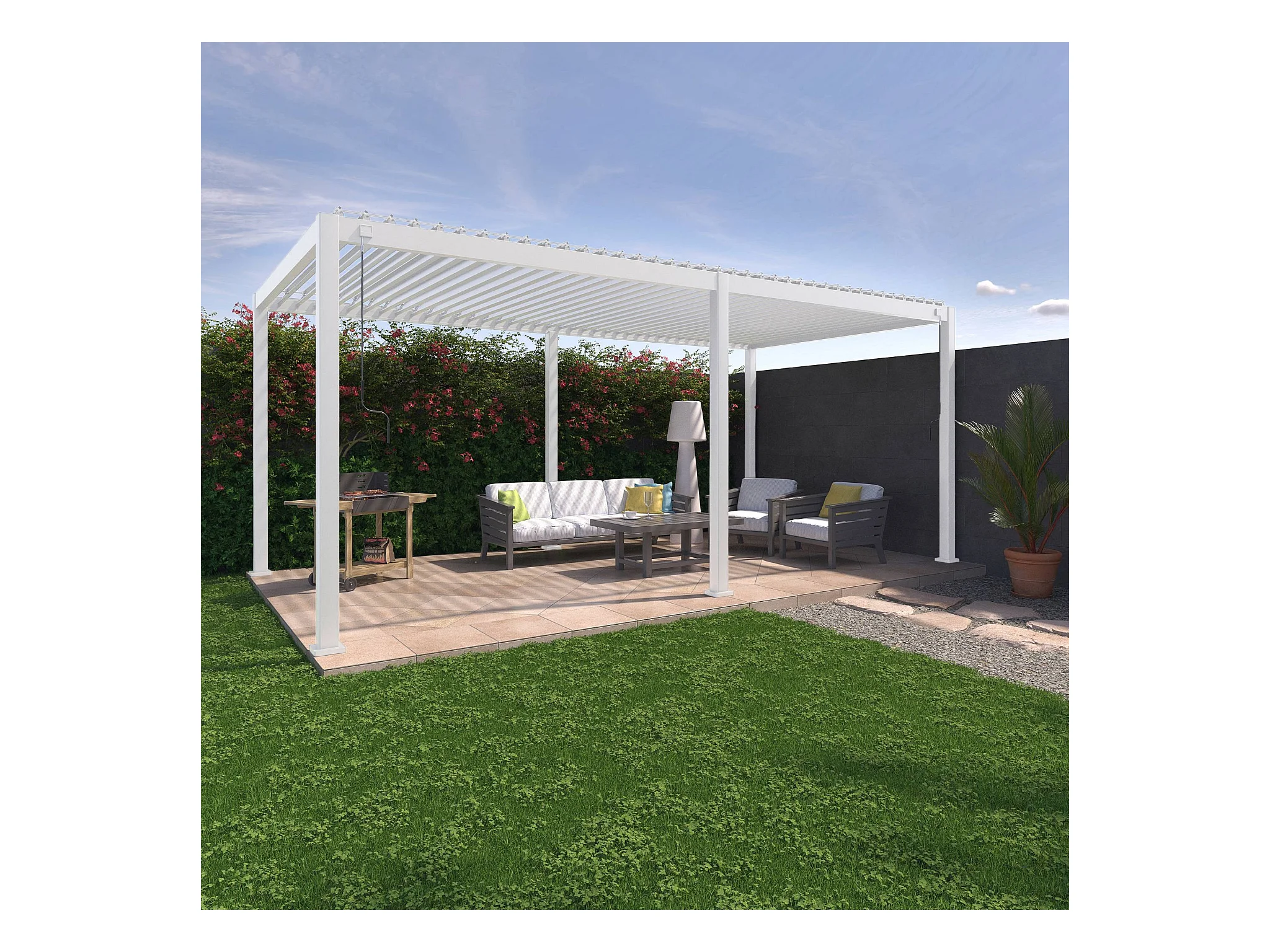 Pergola bioclimatica 3x6m in alluminio, lamelle orientabili, bianco
