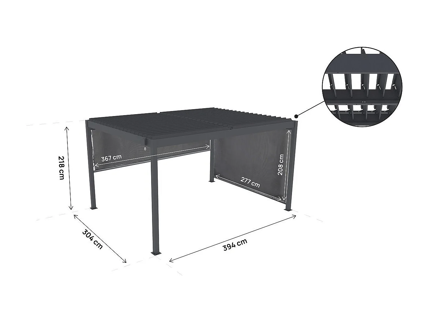 Pergola bioclimatica con 2 tende in alluminio "Windsor" - 3 x 4 m - Grigio