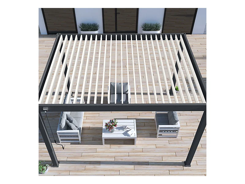 Pergola bioclimatica Ombréa autoportante VS - 3x4M bicolore + 1 tenda 4M bianca