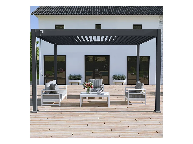Pergola bioclimatica Ombréa autoportante VS 3x4M Antracite + 1 tenda 4M antracite