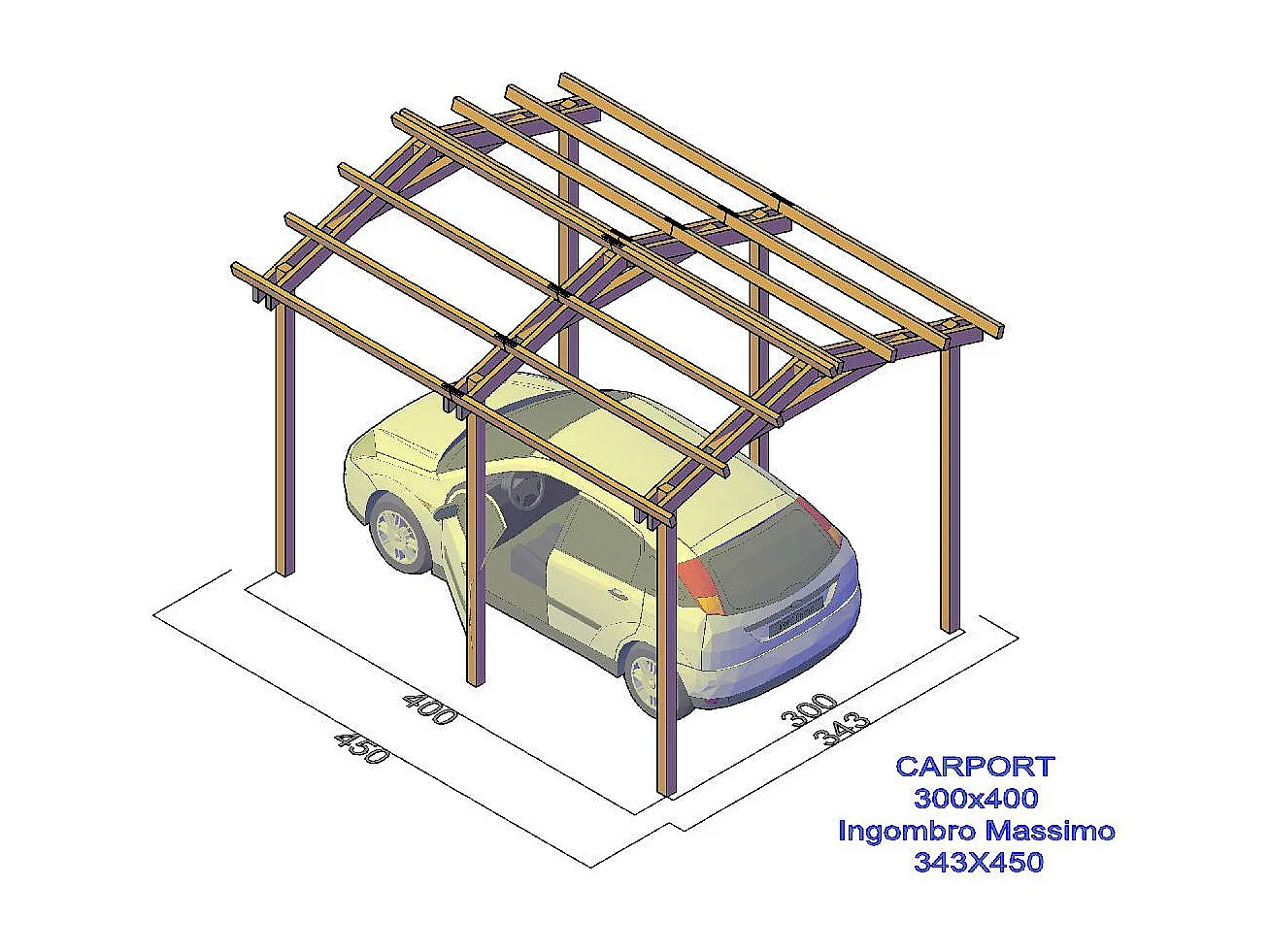Pergola Carport in legno 300x400 cm, in pino impregnato, Made in Italy