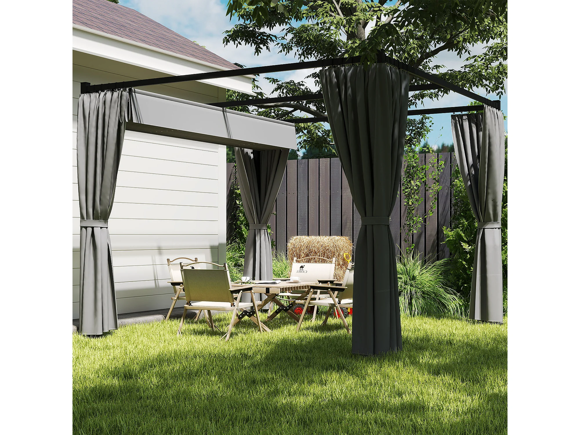 Pergola da giardino con pareti laterali in metallo grigio chiaro