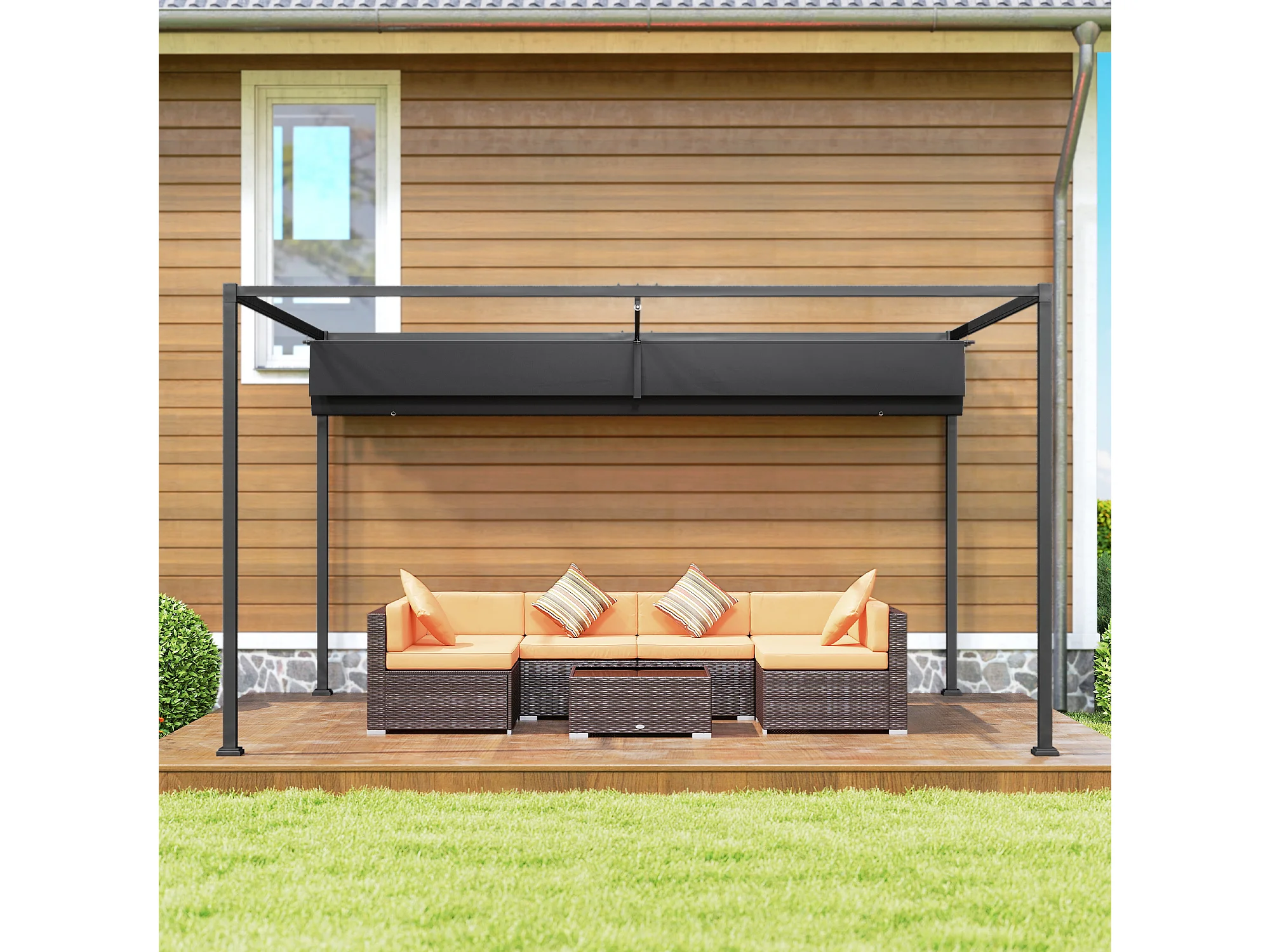 Pergola gazebo 3x2.1 m con tettuccio retrattile in metallo nero